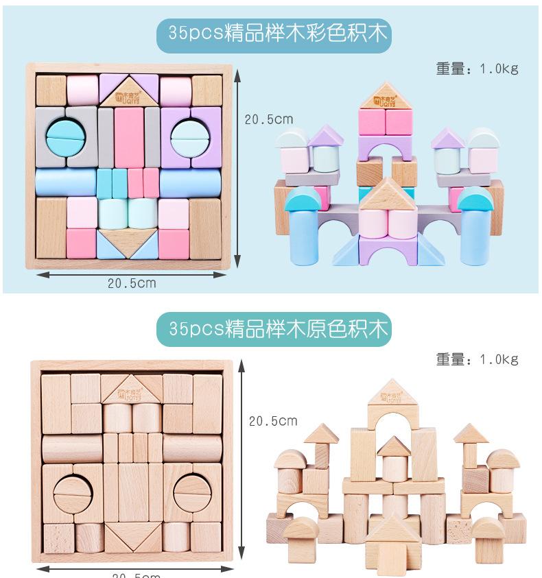 [Nome do produto]: 35 blocos de construção de cor original de madeira de faia / 35 blocos de construção coloridos de madeira de faia