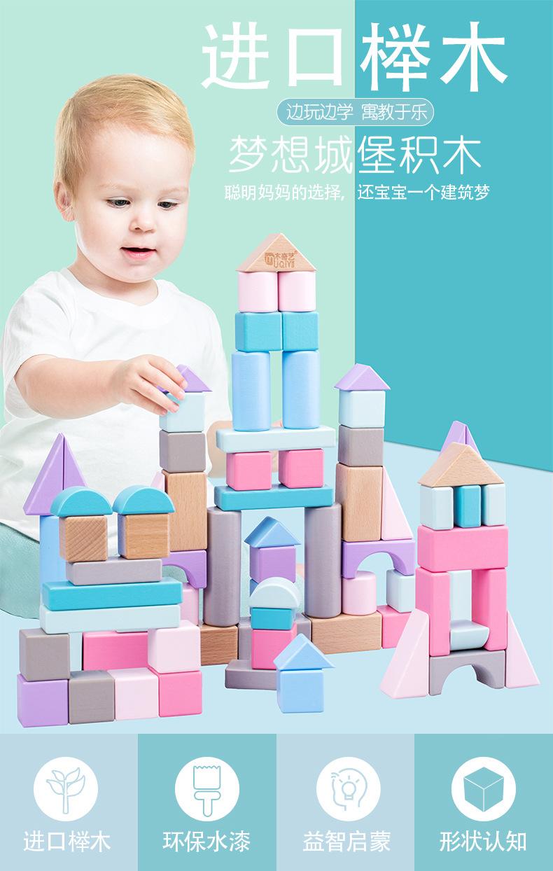[Nome do produto]: 55 blocos de construção de cor original de madeira de faia / 55 blocos de construção coloridos de madeira de faia