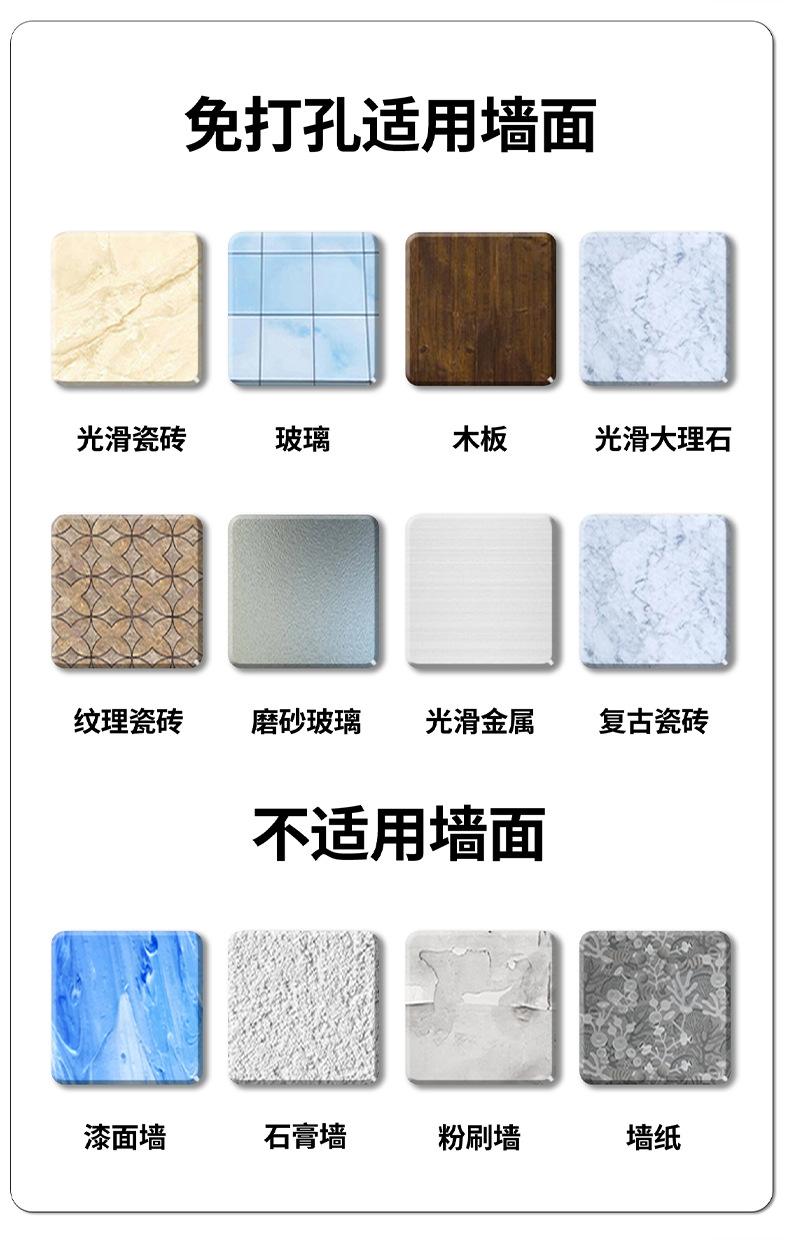 (2) Observe que a superfície da parede deve ser plana e sólida, como ladrilhos de vidro.Não disponível emEm paredes irregulares e instáveis, como paredes pintadas, papel de parede e paredes de cal.