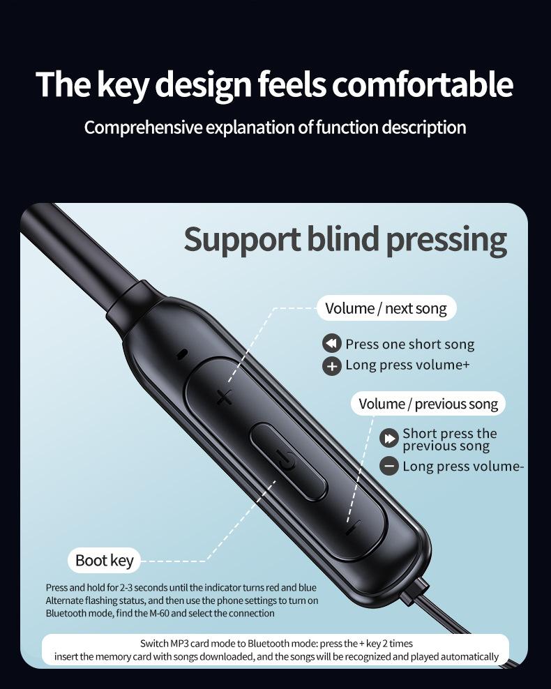 Punto de venta de la función del producto: Bluetooth se puede convertir a tarjeta de memoria para escuchar canciones. Haga doble clic en la tecla + para cambiar a tarjeta de memoria para escuchar canciones.