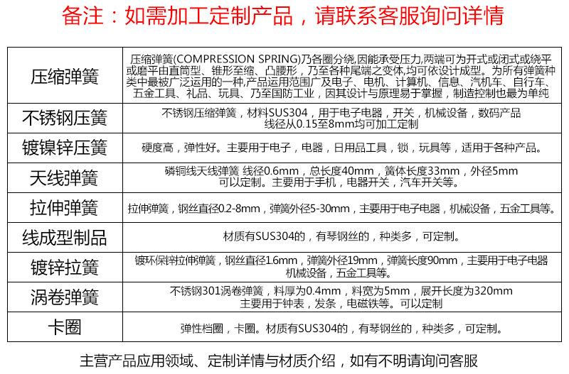 A empresa possui máquinas avançadas de molas de computador, incluindo máquinas de molas de compressão de computador, máquinas de molas de tensão de computador, máquinas de computador e máquinas de molas de torção totalmente automáticas; a maioria das máquinas é importada de Taiwan; também há fornos de têmpera de ar quente contínuos correspondentes e máquinas de retificação de molas totalmente automáticas. O equipamento de teste é completo, incluindo principalmente máquinas de teste de tração de matéria-prima, máquinas de teste de torção, testadores de tensão e pressão de mola, testadores de torção, projetores, testadores de névoa salina, etc. A série de molas de aço inoxidável de matéria-prima inclui principalmente SUS304, SUS316, SUS302, SUS301; a série de aço carbono inclui principalmente SWC, SWP, 65Mn; também há fios de cobre fosforoso, fios de latão, etc. Os materiais vêm do Japão, Coreia do Sul e empresas nacionais bem conhecidas, todos os quais são fios de mola especiais que atendem aos requisitos de proteção ambiental. A filosofia de negócios da empresa é: orientada para as pessoas, pioneira e inovadora, benefício mútuo, honestidade e confiabilidade.
