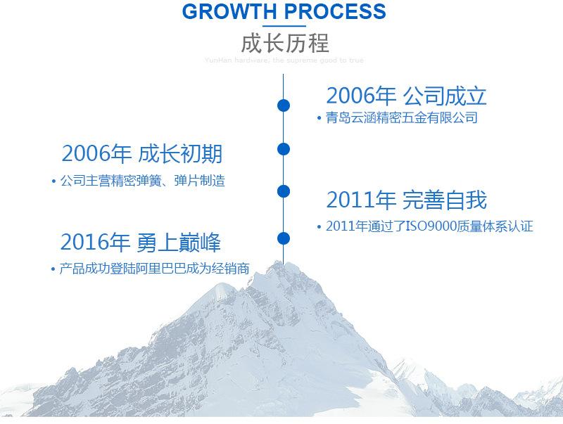 Qingdao Yunhan Precision Hardware Co., Ltd. está localizada em 11-102, Liandong U Valley, Wangtai Street, Huangdao District, Qingdao City, Ecological Technology Valley, Qingdao Development Zone. Foi fundada em 2006 e seus principais produtos são molas de precisão e molas. Para atender aos requisitos de qualidade dos clientes, a empresa passou pela certificação do sistema de qualidade ISO9000 em 2011.