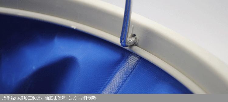 [Corpo do balde]: Feito de tecido Oxford com revestimento de plástico (polietileno), material de tecido sintético impermeável.