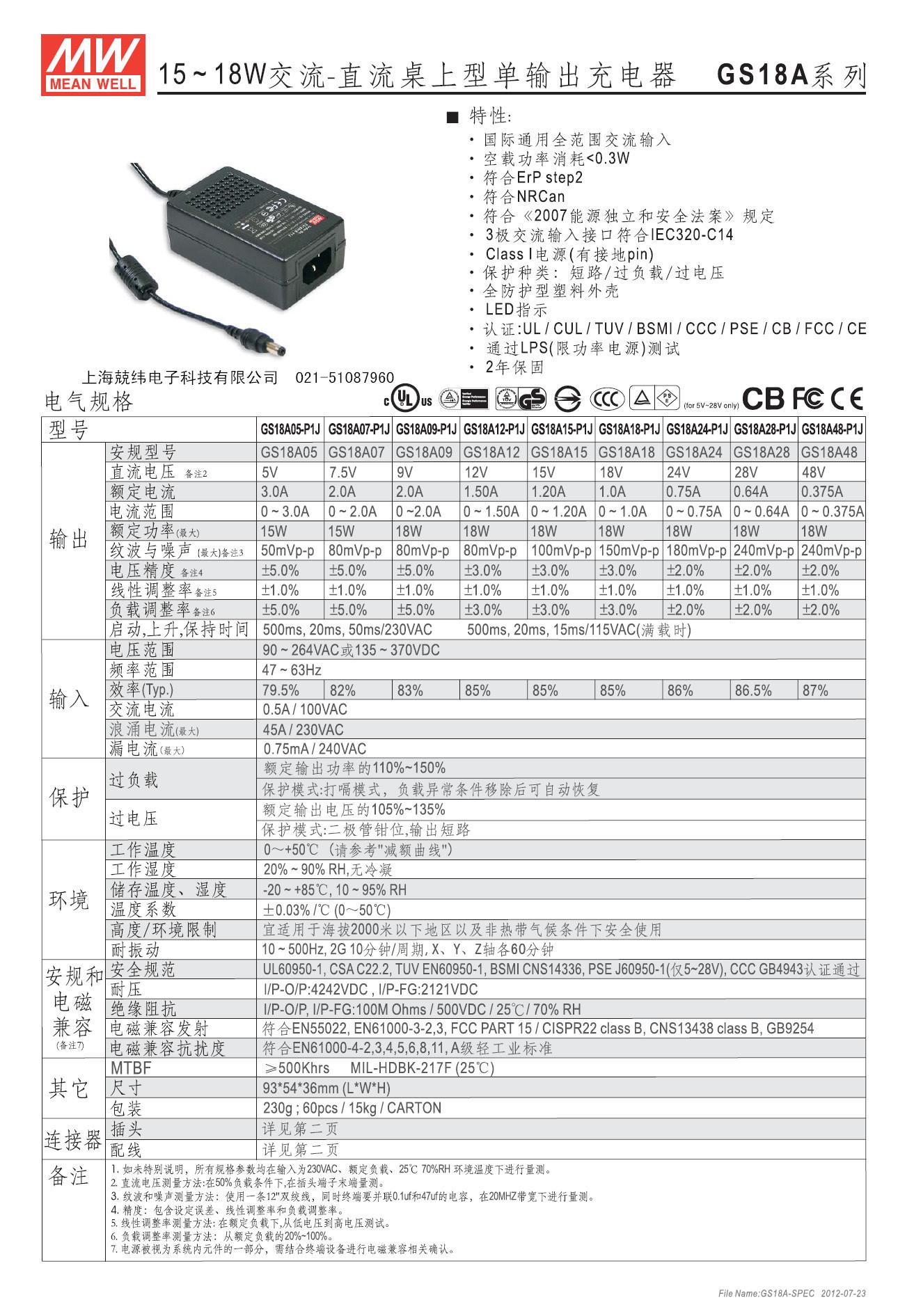 Los adaptadores de corriente Mean Well de la serie GS son adaptadores de bajo consumo y alta calidad que utilizan energía verde. Son populares en el extranjero y son productos empresariales de alta gama que pueden funcionar de forma continua durante 7 días a la semana. Han superado estrictas certificaciones de seguridad y ahorro de energía en todo el mundo y se utilizan ampliamente en TI, seguridad, iluminación LED y otros campos. Su rango de potencia va de 6 a 280 vatios, y su voltaje de salida abarca una variedad de voltajes comunes, desde 5 V hasta 48 V. Se pueden seleccionar diferentes interfaces de entrada según el entorno de suministro de energía de cada país, y las especificaciones de la interfaz de CC se pueden personalizar para compras al por mayor.