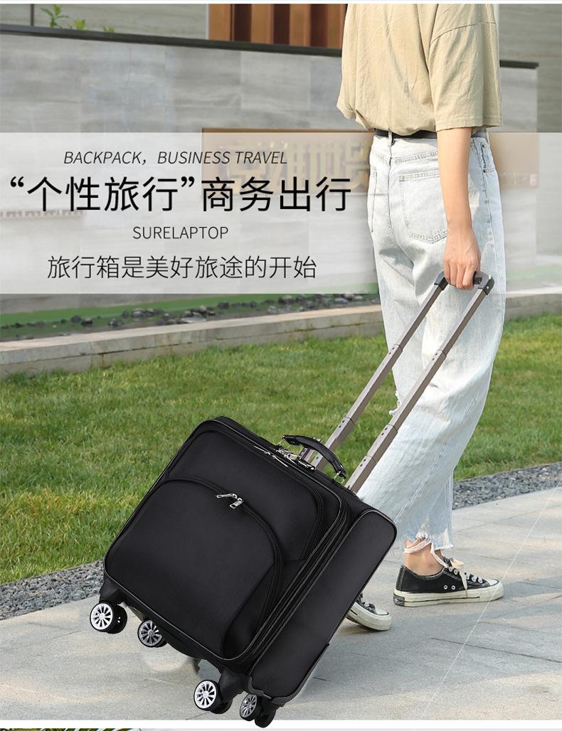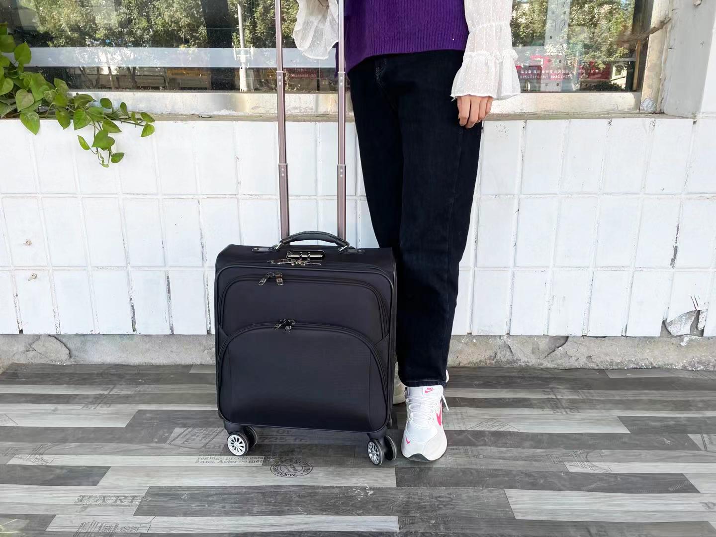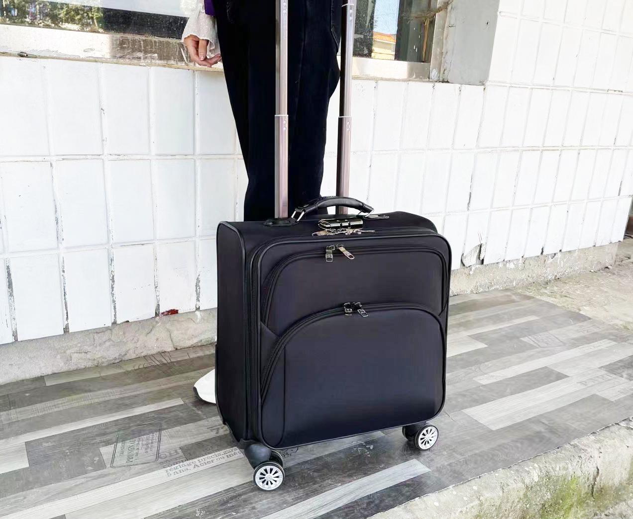 Este modelo é longo, feito de tecido Oxford impermeável, estrutura de metal, múltiplas camadas de armazenamento e haste de tração de três seções em liga de alumínio. O tamanho é a versão grande padrão de 16 polegadas, algumas plataformas são marcadas como 18 polegadas, o tamanho real em cm prevalecerá.