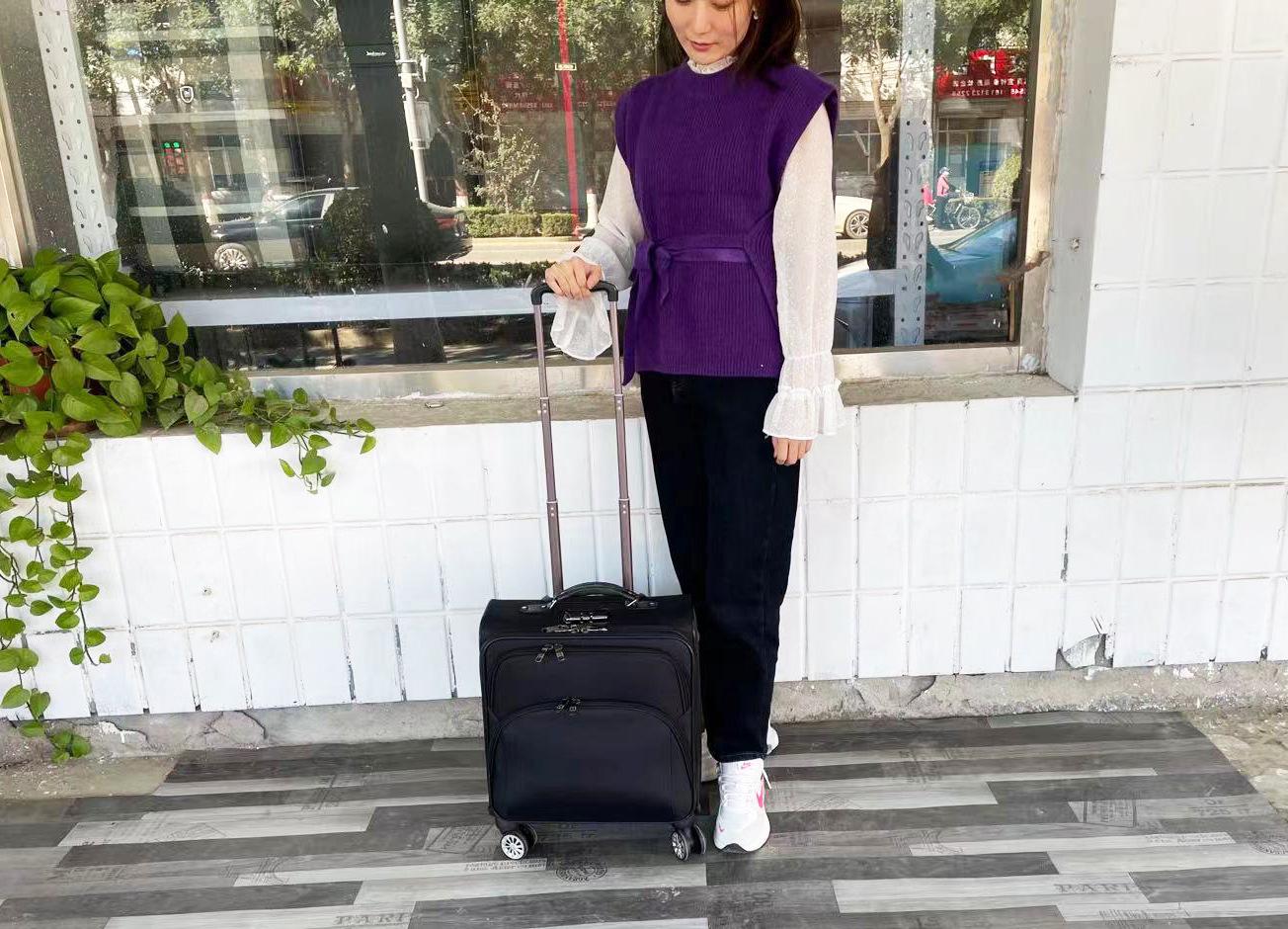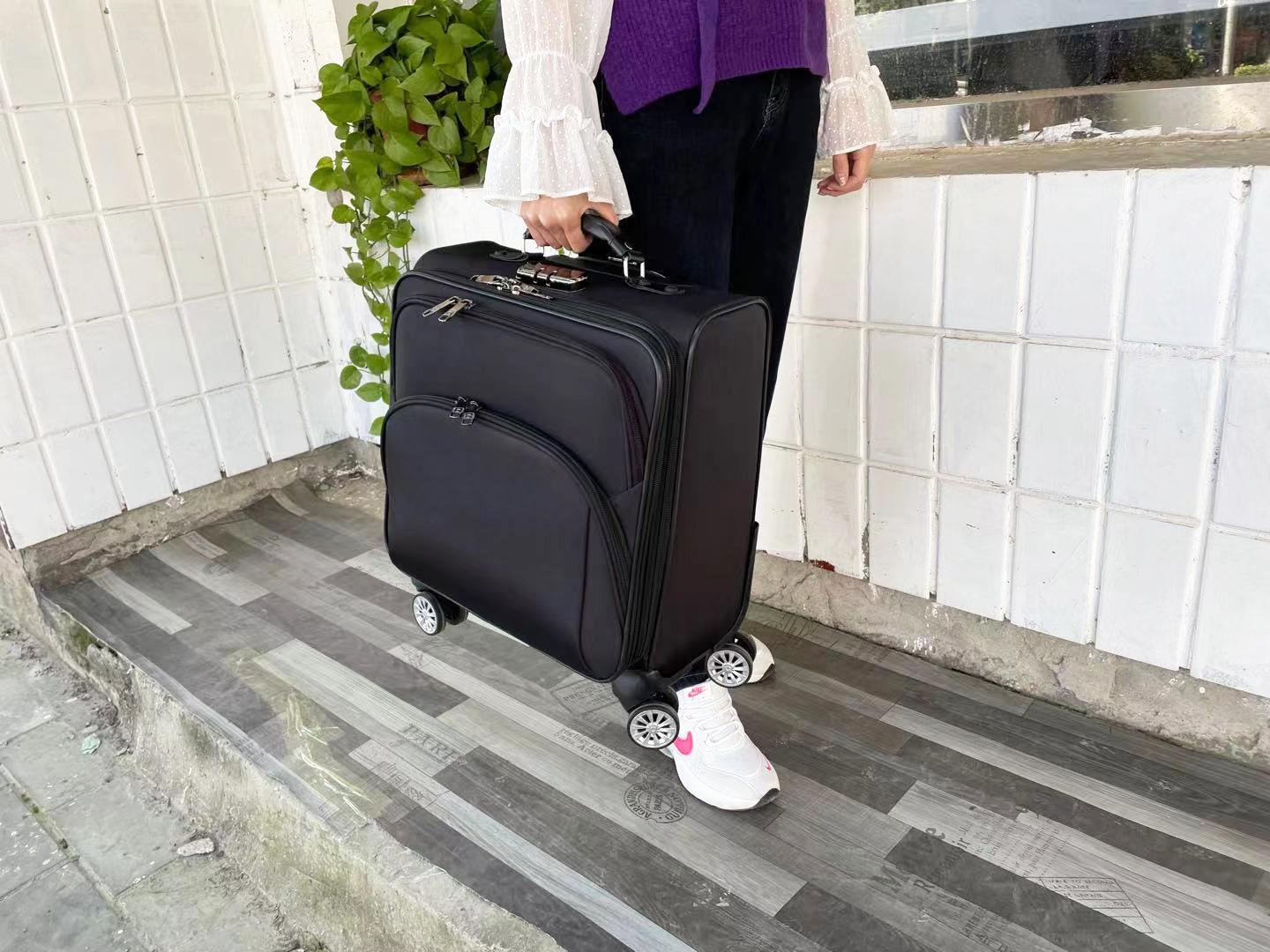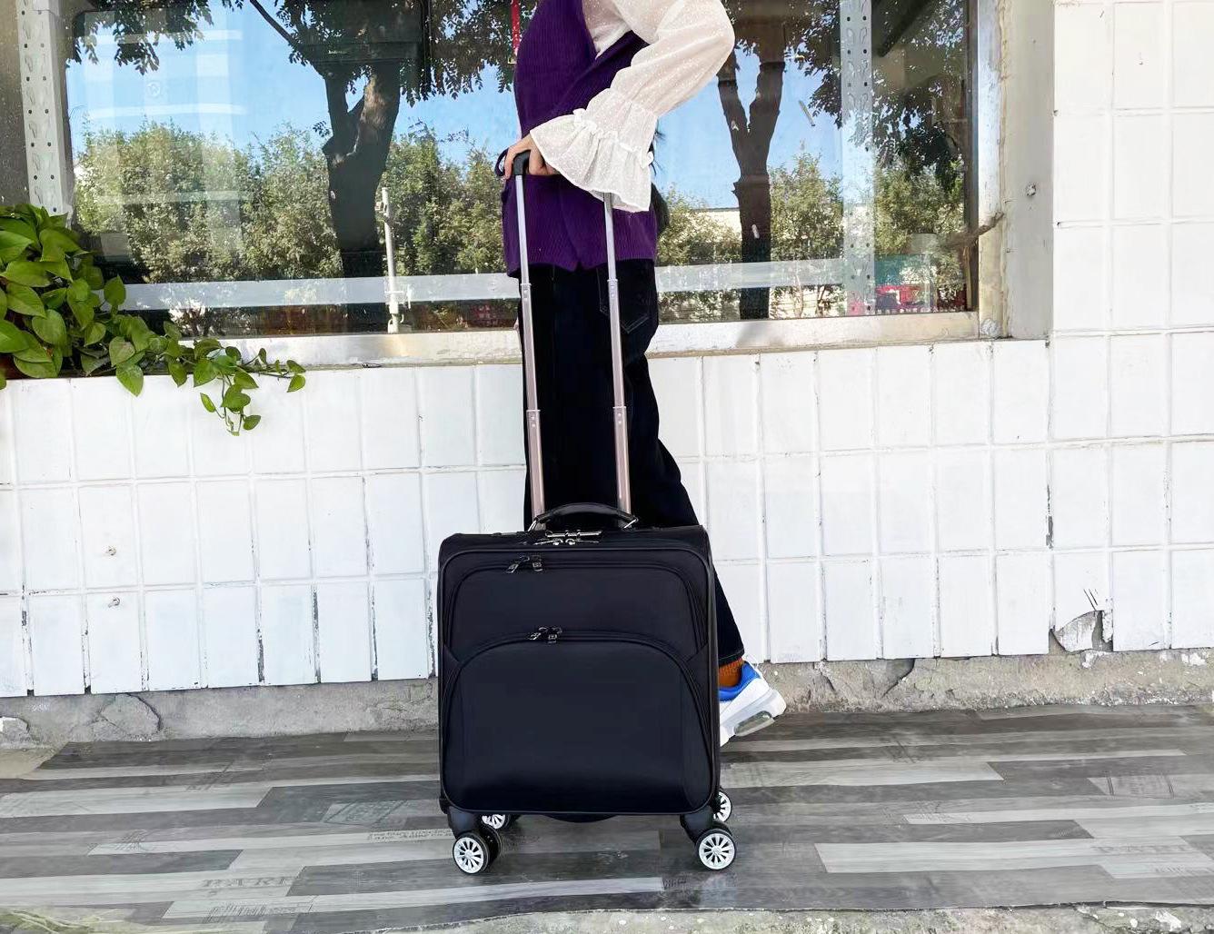 Este modelo é longo, feito de tecido Oxford impermeável, estrutura de metal, múltiplas camadas de armazenamento e haste de tração de três seções em liga de alumínio. O tamanho é a versão grande padrão de 16 polegadas, algumas plataformas são marcadas como 18 polegadas, o tamanho real em cm prevalecerá.