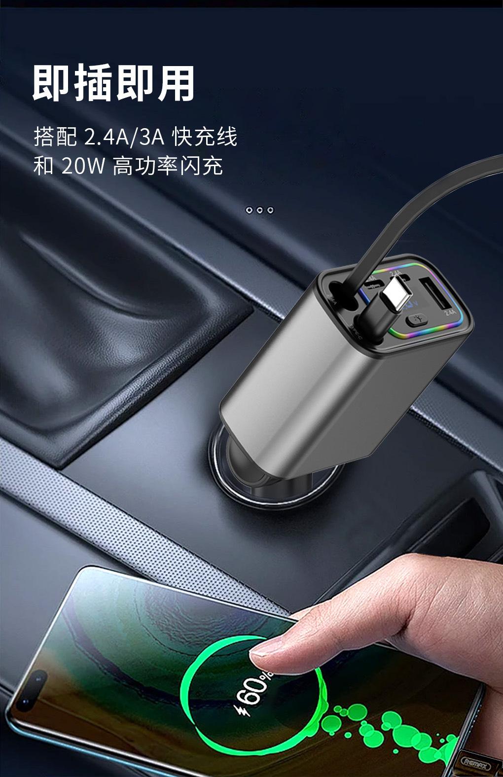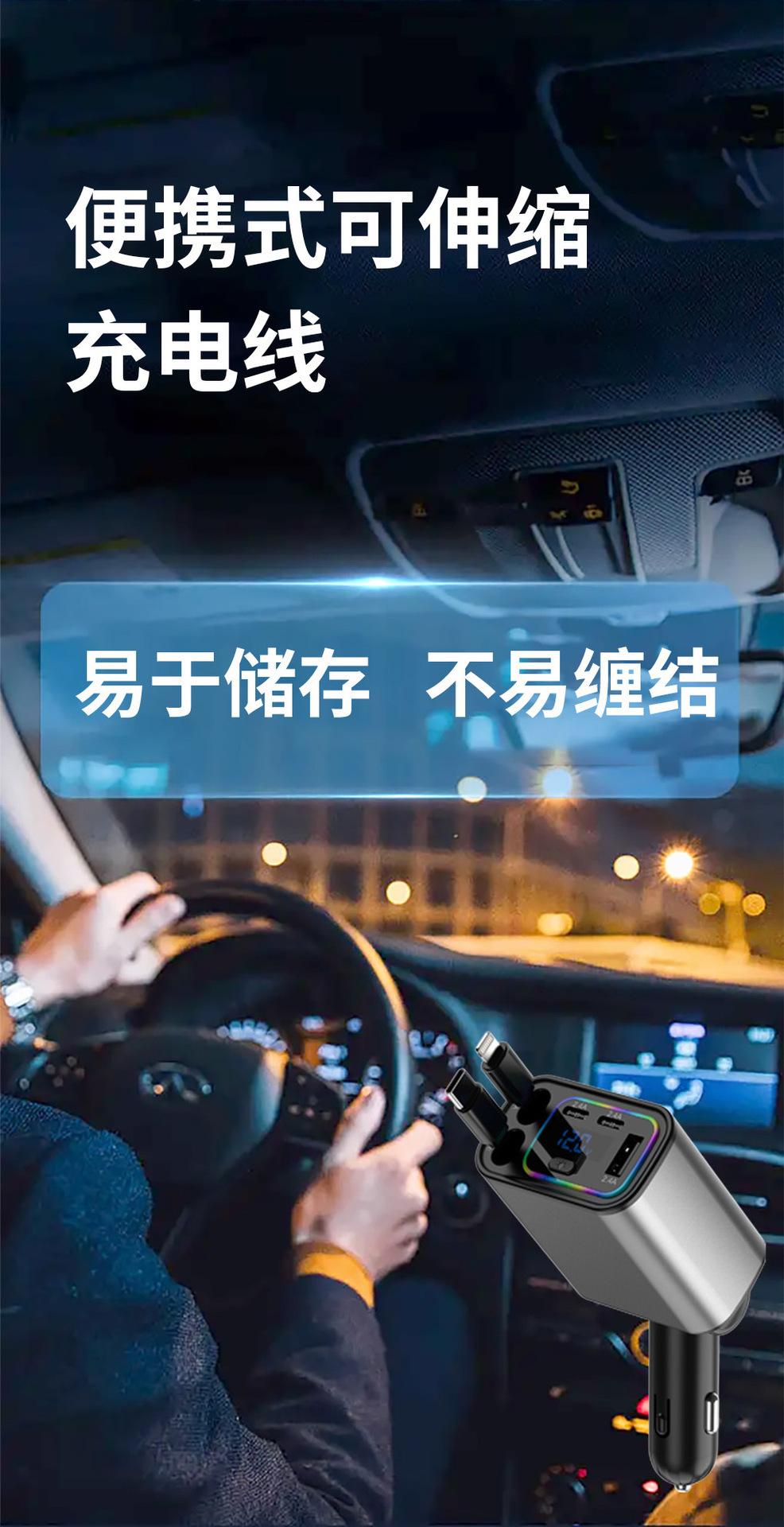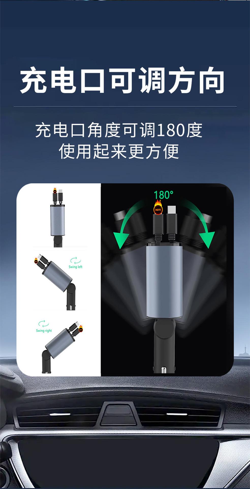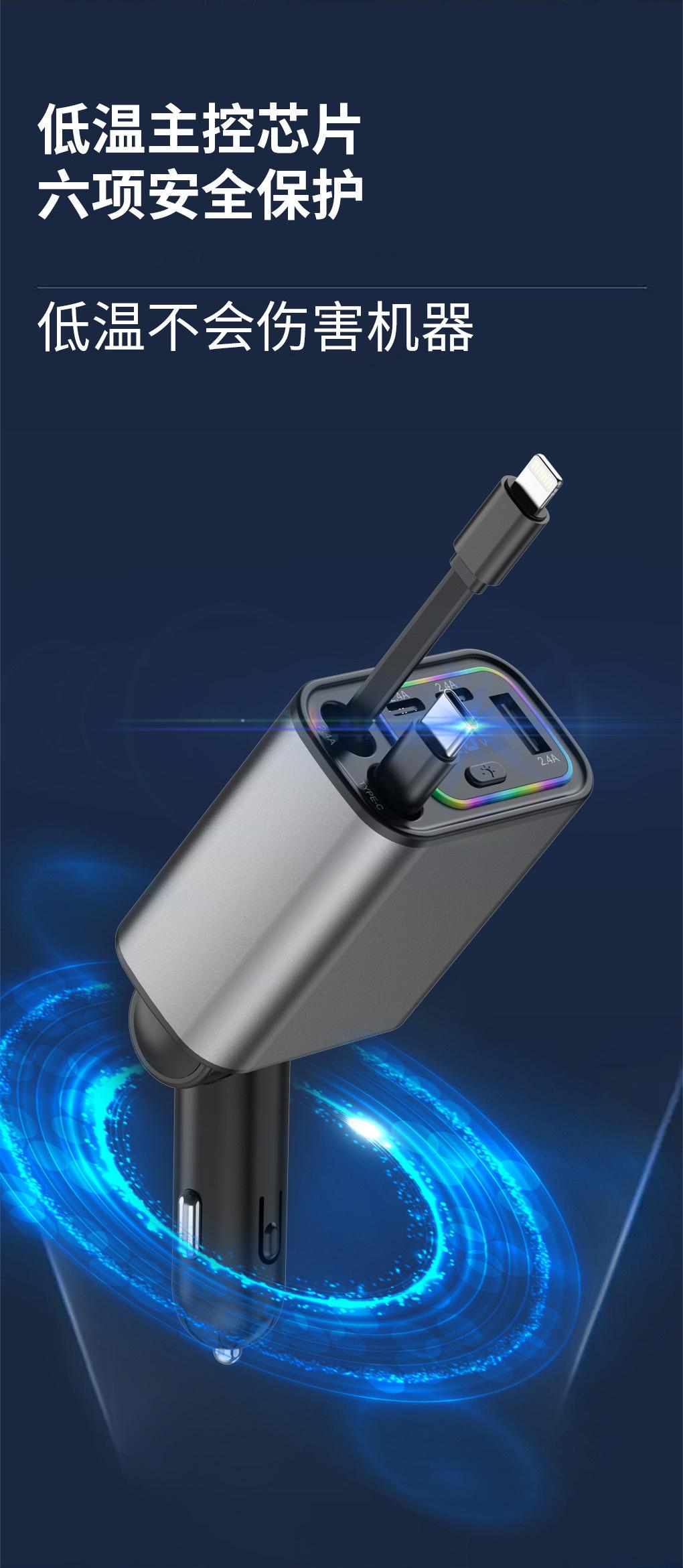 Características: Apariencia nueva y novedosa, luces coloridas, universal para modelos de 12-24V. Longitud del cable de carga uno a dos 60CM (cabezal Android, cabezal TYPE-C, cabezal Apple, PD). Soporta carga uno a tres, compartiendo la salida total 5V3A de carga rápida.