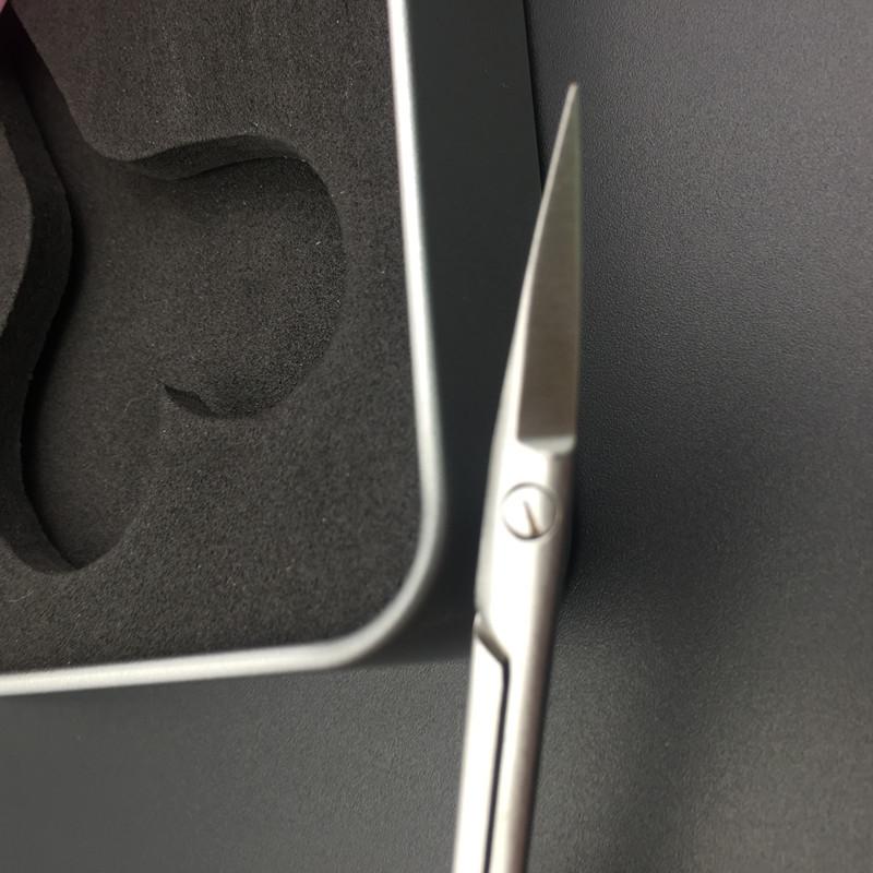 O formato da tesoura é mais fino, mais adequado para as mãos femininas e a superfície lixada de alta qualidade é mais delicada
