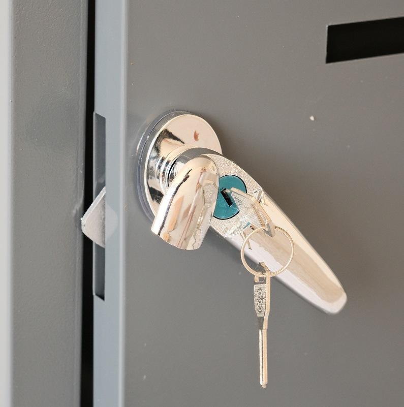 Com chave de trava da porta para evitar que a lixeira seja roubada