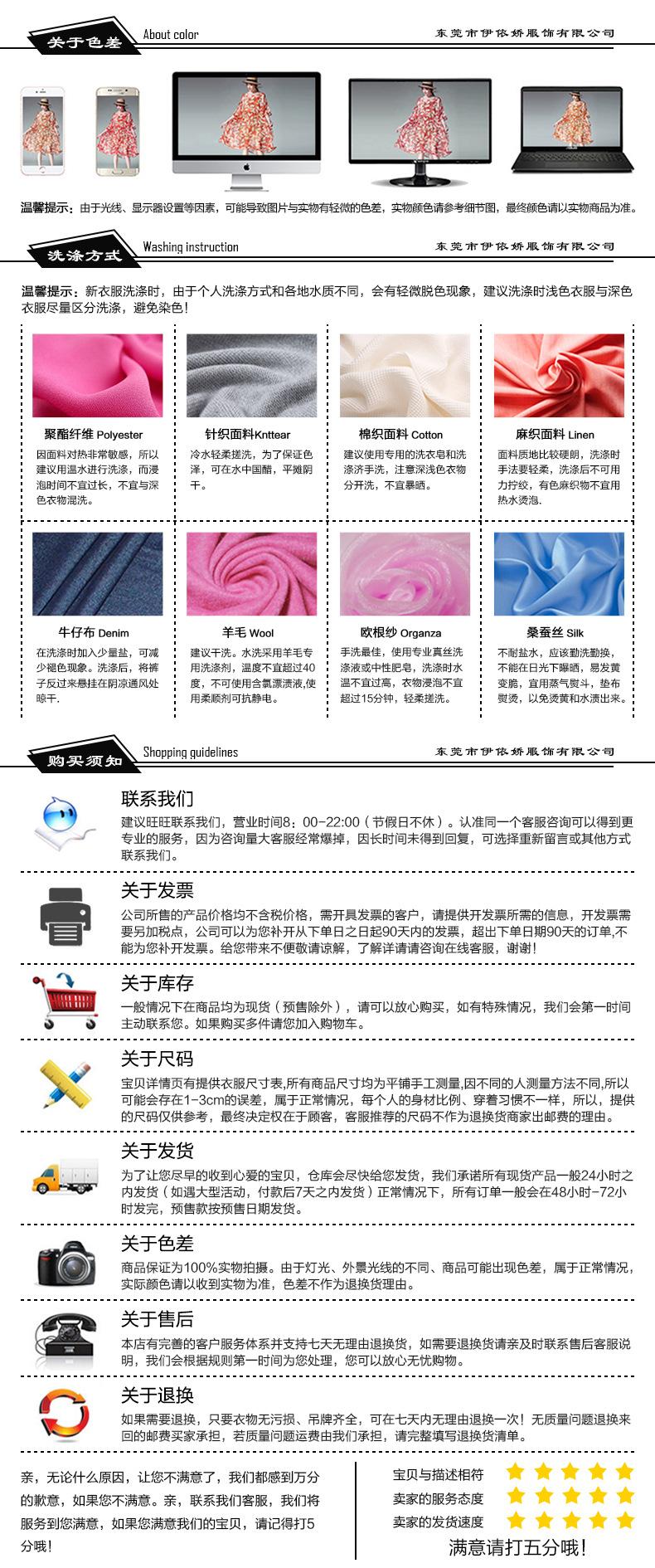 2. Sobre la factura: El precio de este producto no incluye impuestos. Se deben agregar puntos de impuestos adicionales al emitir la factura. Para más detalles, por favor consulte al servicio de atención al cliente en línea. ¡Gracias! 3. La empresa tiene su propia fábrica e inventario suficiente. Los productos se enviarán dentro de las 24 horas posteriores a la realización del pedido. El pedido mínimo es una pieza. Le invitamos a poner los productos en el estante para la venta por consignación (envío directo de una pieza). Si la cantidad es grande, puede ponerse en contacto con el servicio de atención al cliente para negociar el precio. 4. Aceptamos procesamiento personalizado según dibujos y muestras, y las placas se producirán en 3 días y se enviarán en 5 días después de que las placas estén producidas. 5. La empresa se adhiere al concepto de cooperación honesta y cooperación de beneficio mutuo. En la premisa de garantizar la calidad, te ayudaremos a reducir los costos al nivel más bajo. Ropa Yiyijiao está dispuesta a trabajar contigo para lograr una cooperación de beneficio mutuo en el camino transfronterizo. ¡Se da la bienvenida a clientes nuevos y antiguos para discutir la cooperación! 6. Nuestra tienda utiliza STO Express por defecto. Si necesita especificar una paquetería, por favor, contacte con el servicio de atención al cliente. La logística de paquetería generalmente recoge los paquetes a las 22:30 de la noche. Para los pedidos no pagados, por favor, complete el pago antes de las 21:00 del mismo día. Para los pedidos pagados después de las 21:00, ¡intentaremos enviarlos el mismo día! ¡Por favor, tome nota! ¡Gracias! |