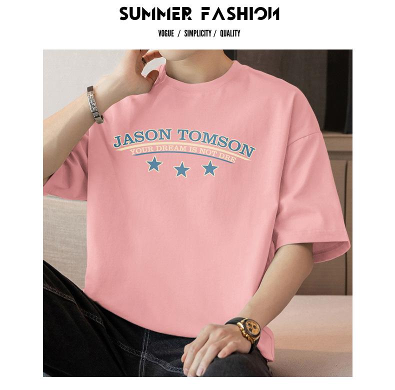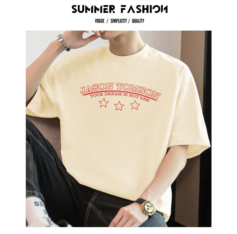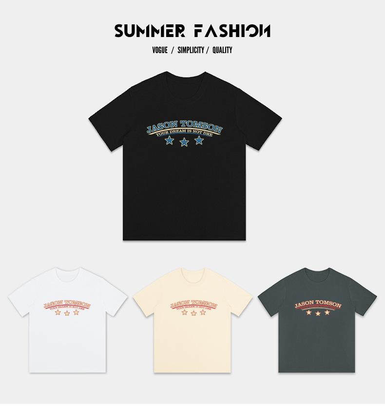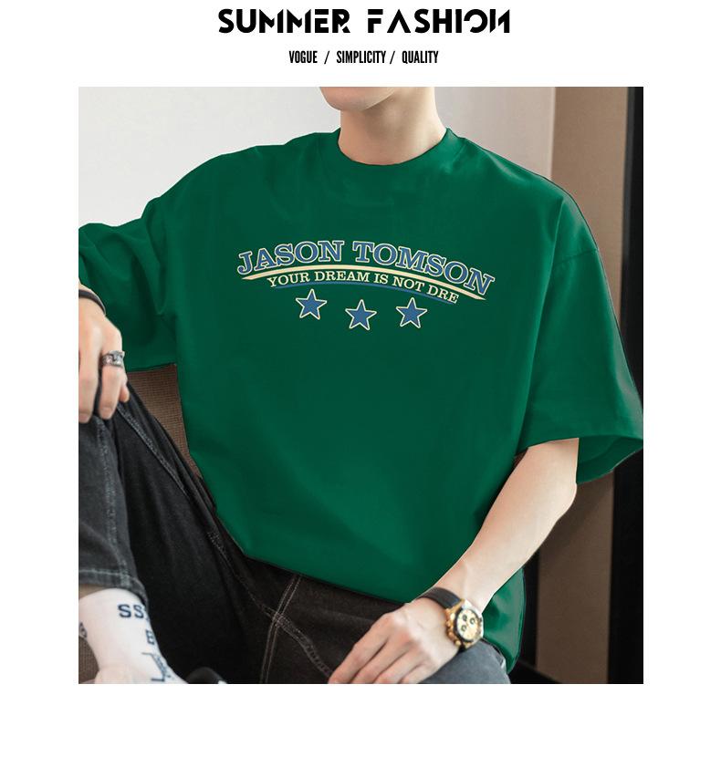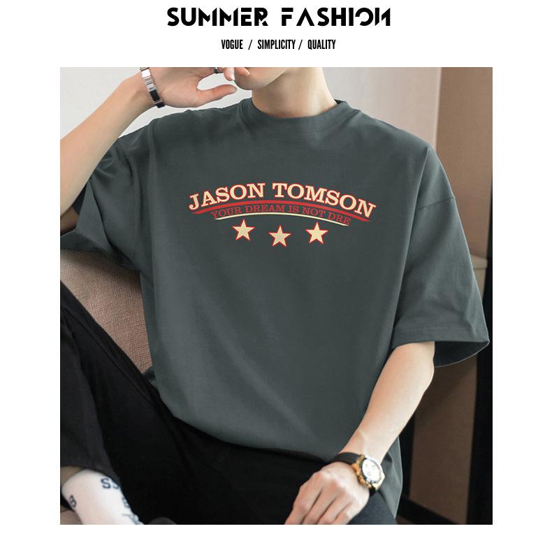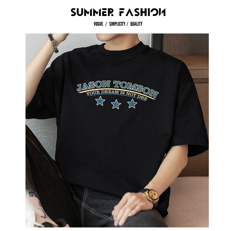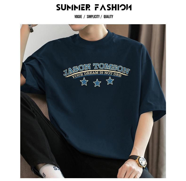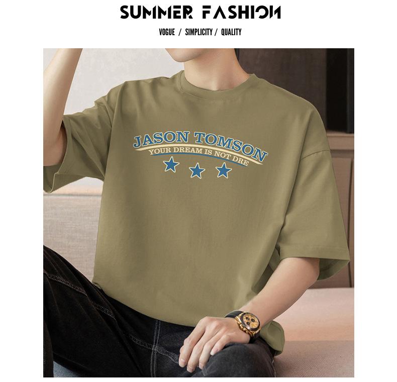 Camiseta de manga corta de algodón pesado de 260 g para hombre, nueva moda de verano 2025, cuello redondo, algodón, media manga