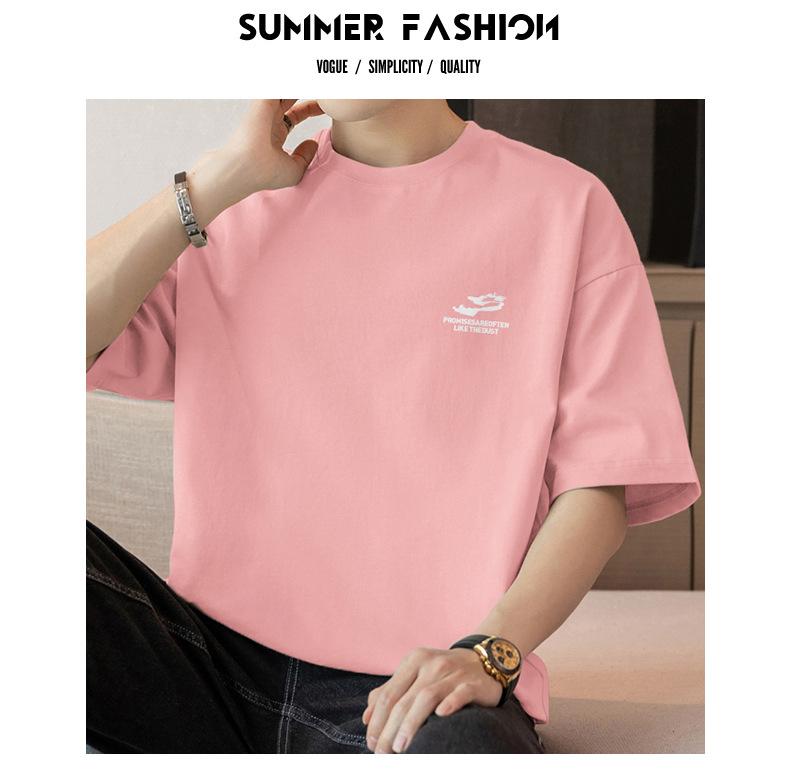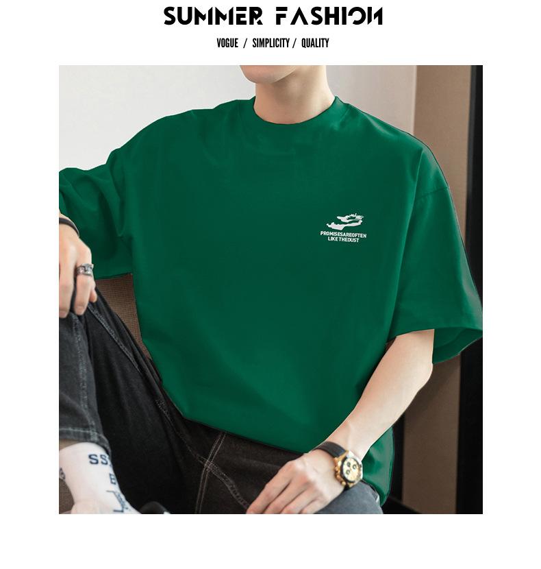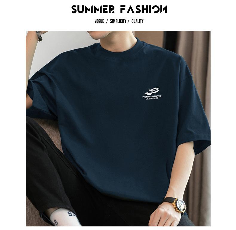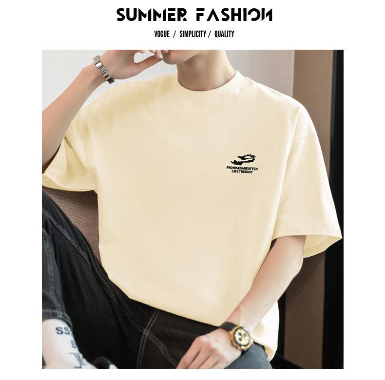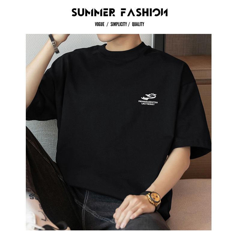 Camiseta de algodón pesado de 260 g para hombre, de manga corta, moderna, con cuello redondo y estampado de marca, ropa de verano holgada de media manga.