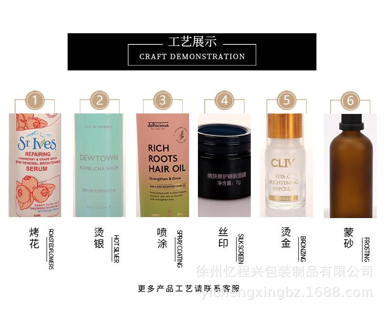 Nuestra empresa vende directamente desde fábrica y se dedica principalmente a la fabricación de envases de vidrio para perfumes, aceites esenciales, cremas, lociones, recargas, esprays y otros productos cosméticos y de cuidado de la piel. Nuestra fábrica ofrece servicios de personalización con procesamiento profundo, como planos y muestras, apertura y personalización de moldes, y ofrece servicios de pulverización, serigrafía de logotipos, impresión a color, estampado en caliente, estampado en caliente de plata, horneado, pulido, grabado láser y otros procesos de impresión. Le invitamos a visitarnos. Para más información, póngase en contacto con el servicio de atención al cliente.