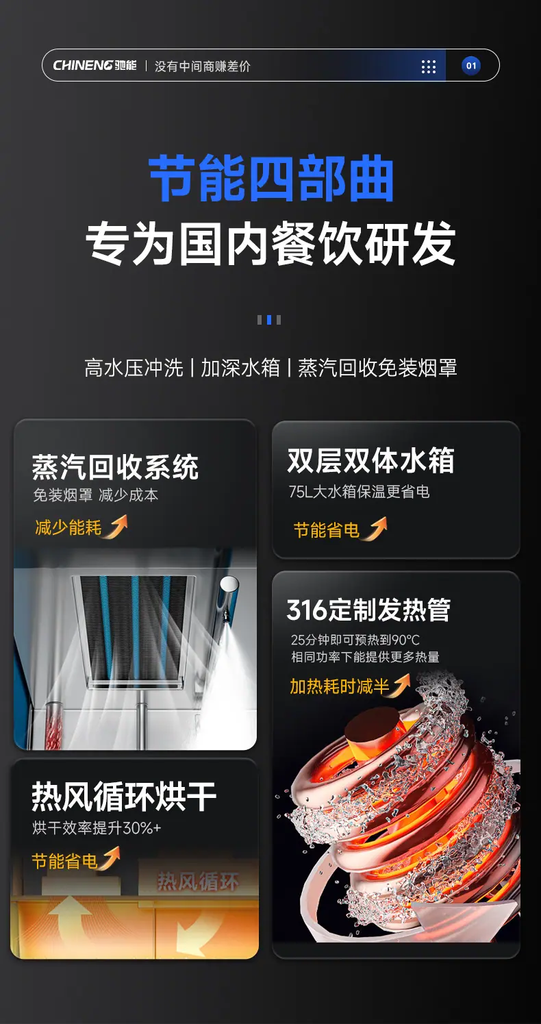 Lavavajillas comercial Chi Neng, gran comedor de hotel escolar con máquina de desinfección y secado automático, lavavajillas Changlong