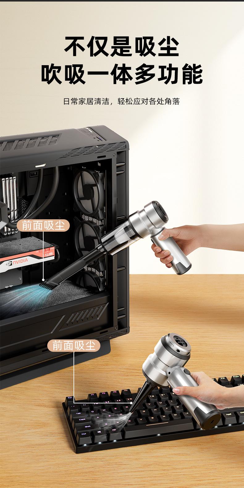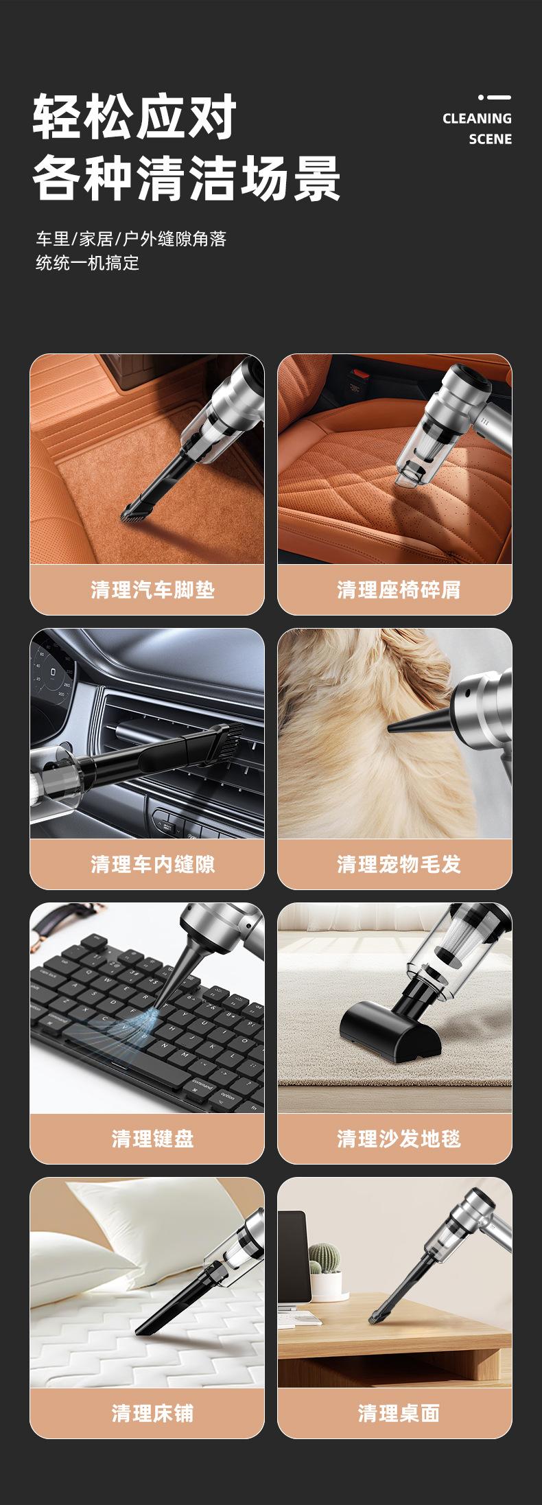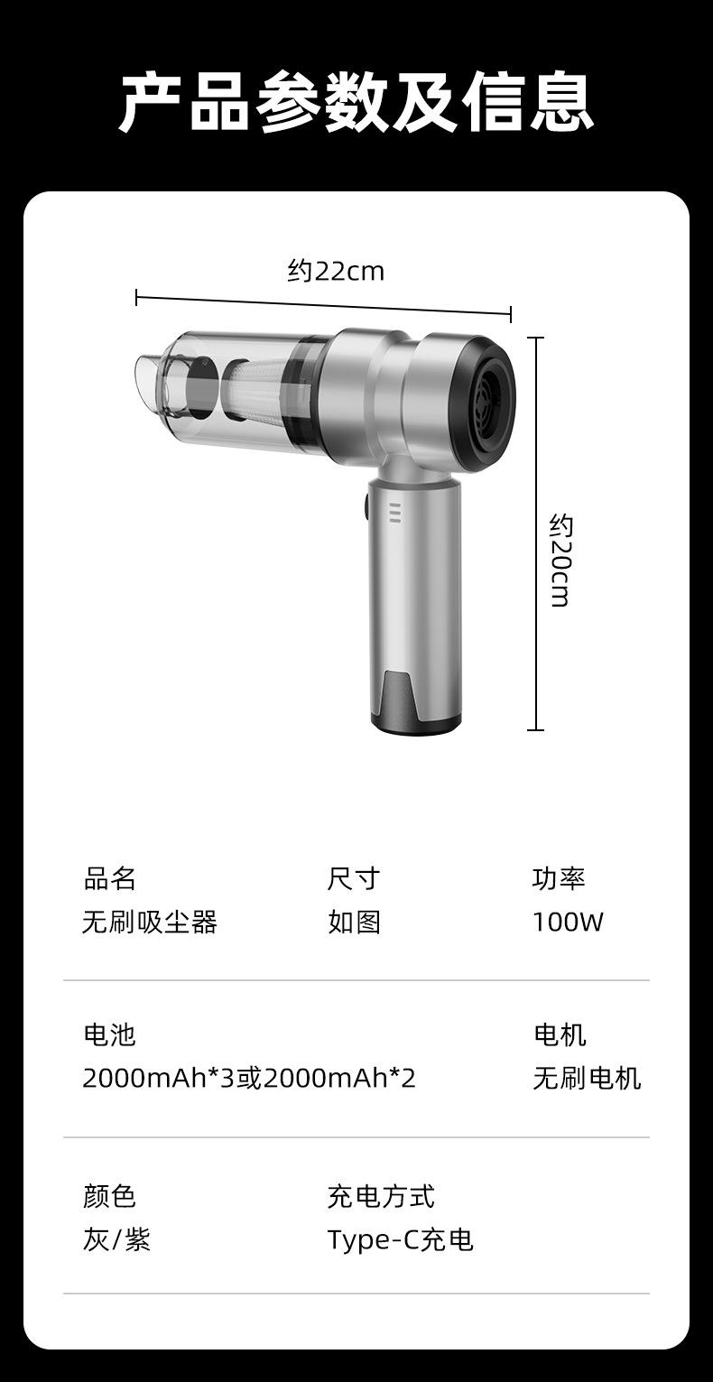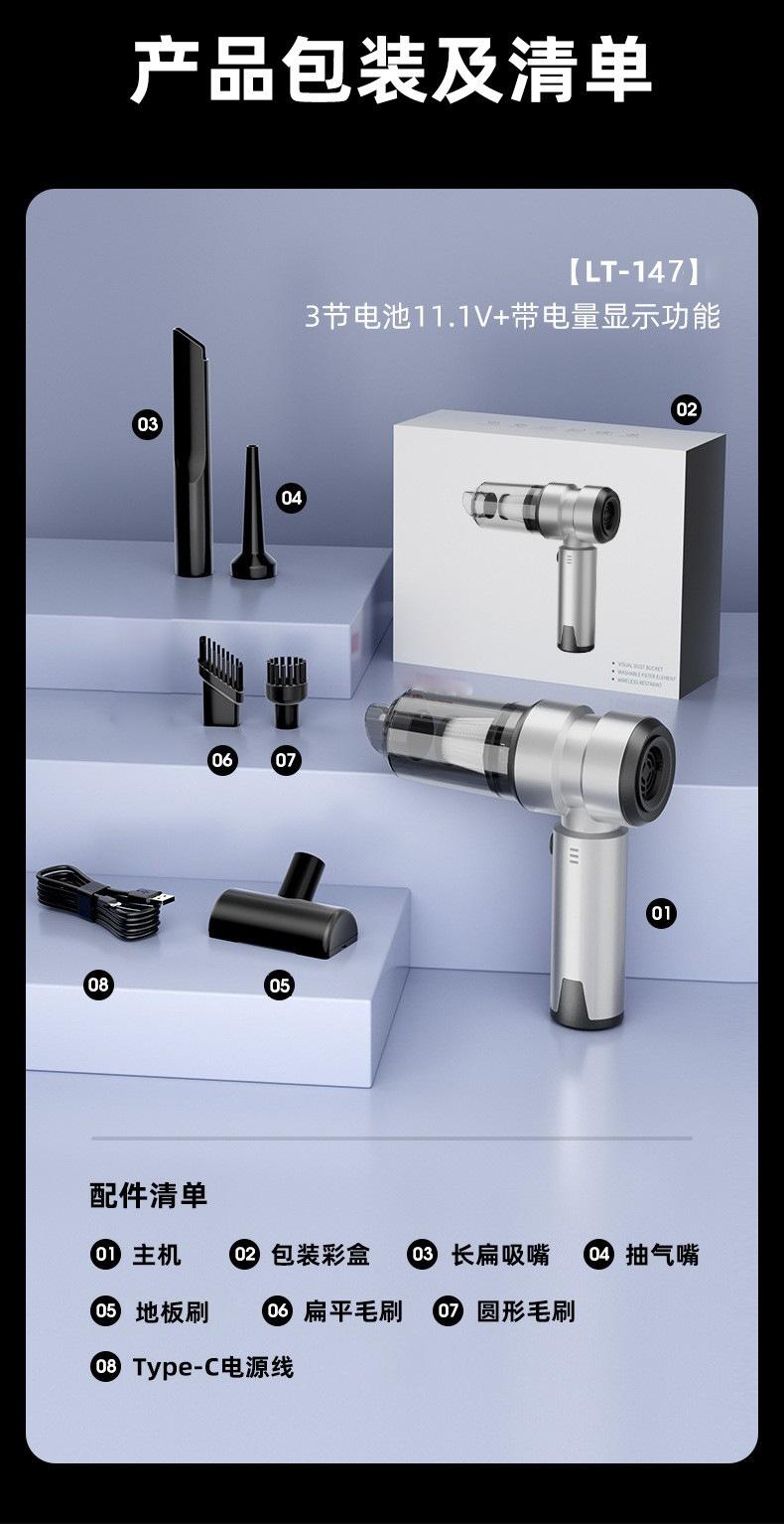 Acessórios: escova, tubo plano, bocal grande,USBCabo de carregamento, (três acessórios infláveis), haste longa, escova de haste longa