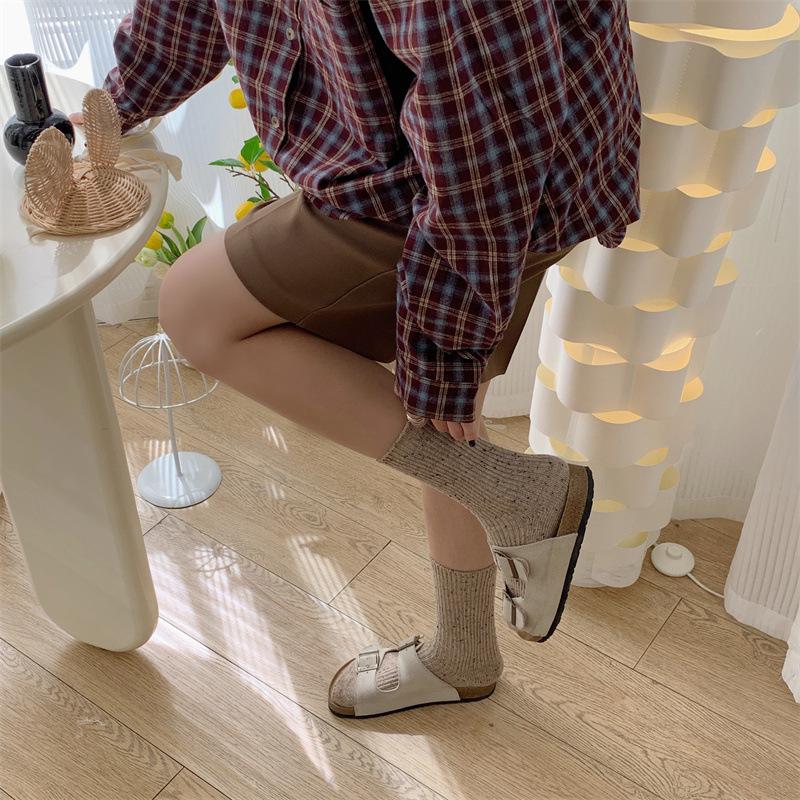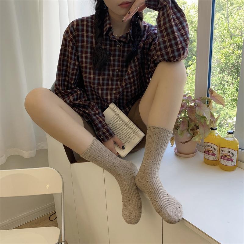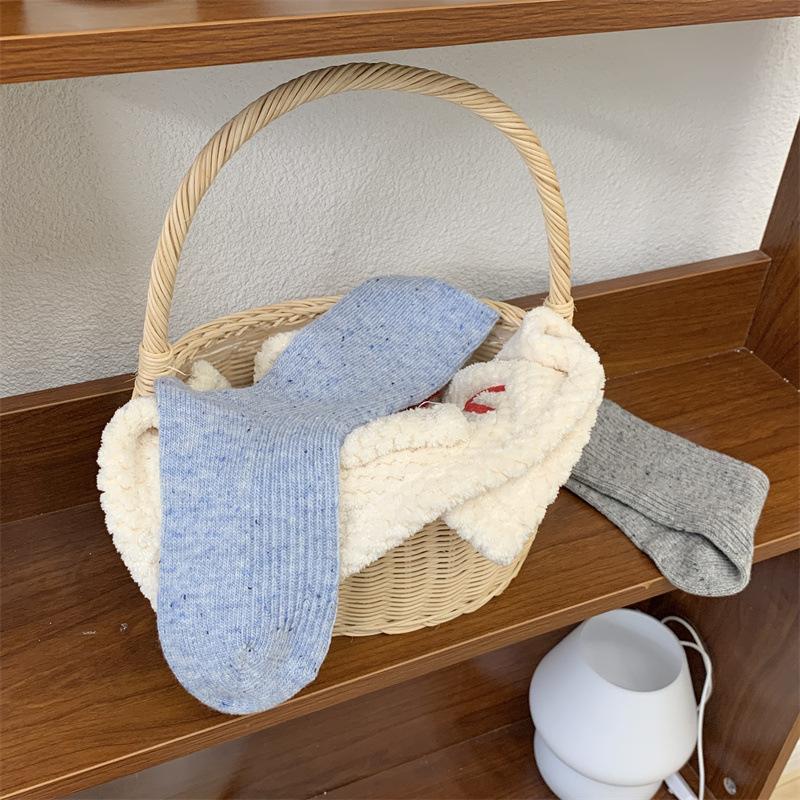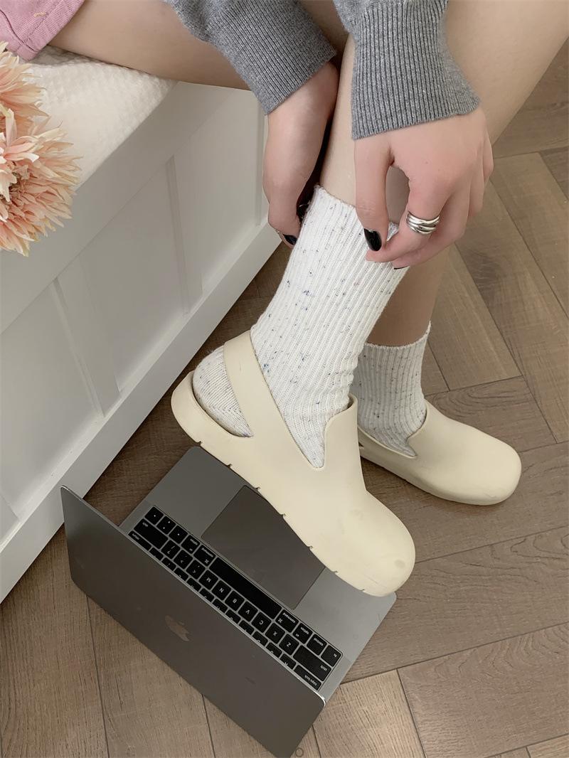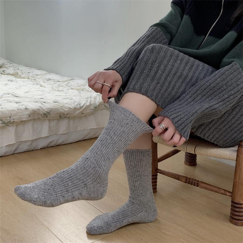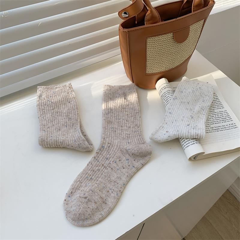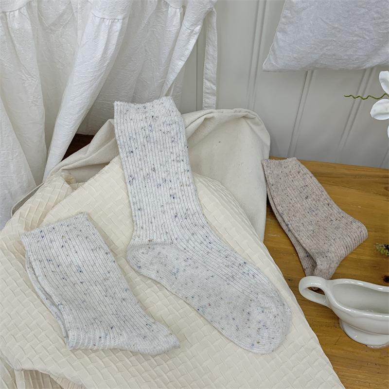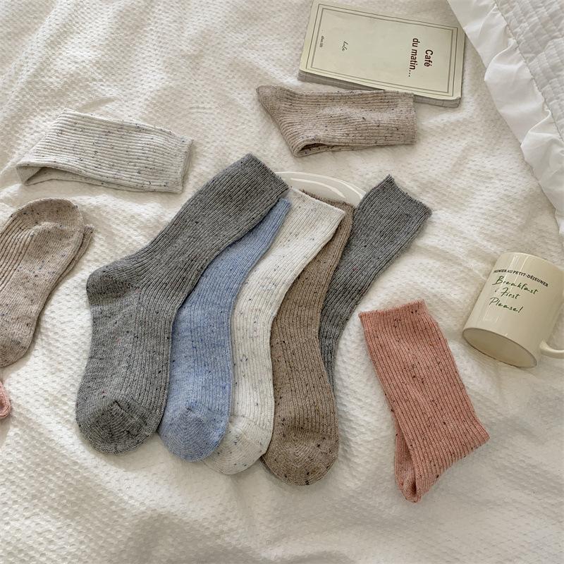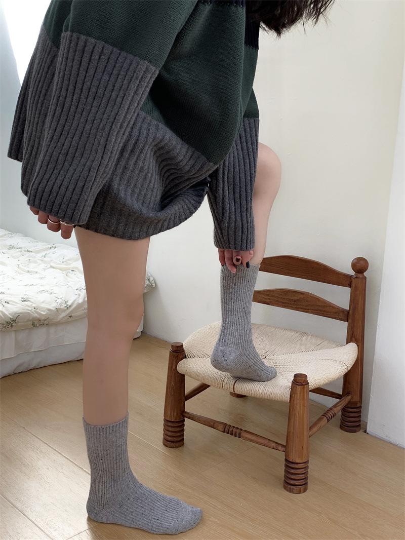 Hilo de color muy texturizado, hecho en 6 colores. El grosor es más adecuado para otoño e invierno, contiene 10% de lana, lo cual es mejor que los calcetines de hilo de algodón ordinario para mantener el calor. Los calcetines han sido lavados y suavizados antes de salir de fábrica. No picarán tus pies cuando los uses, y son relativamente suaves y amigables con la piel.
