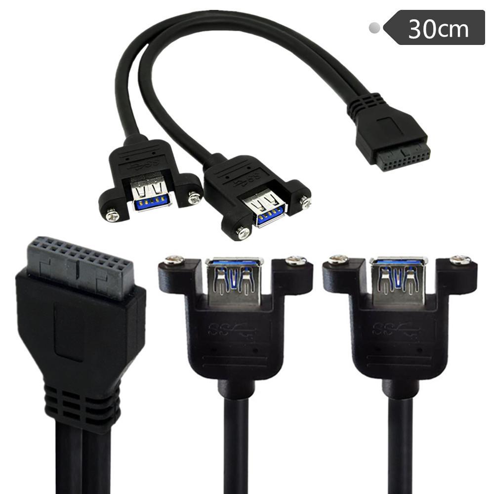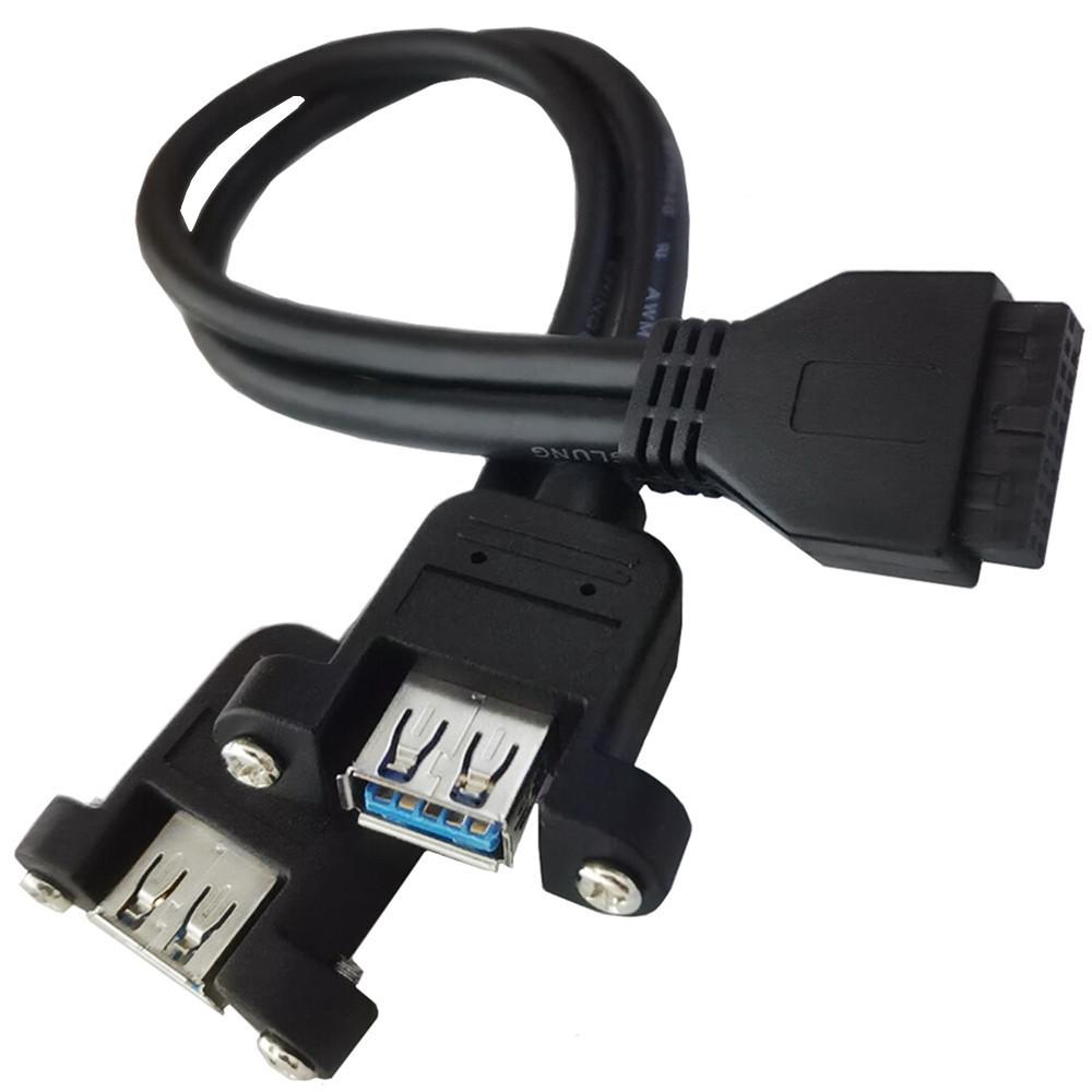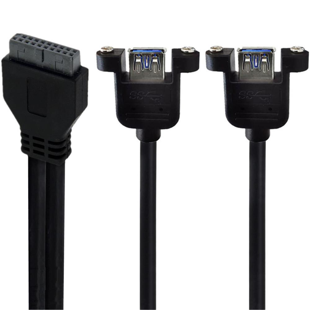 Placa-mãe USB 3.0 preta 20 pinos para conector fêmea de porta dupla com parafusos cabo adaptador USB 3.0 20 pinos 30cm;