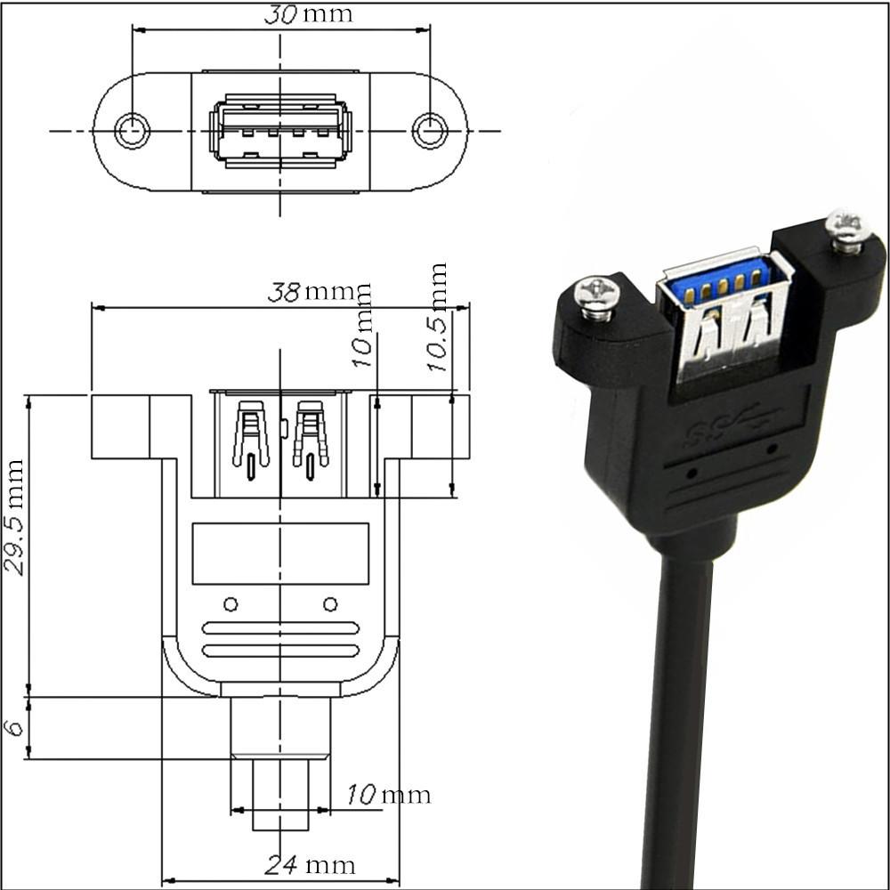 USB 3.0 Portas Duplas A Fêmea Tipo Montagem com Parafusos para Cabo Header 20 pinos da Placa Mãe Preto 0,3m;