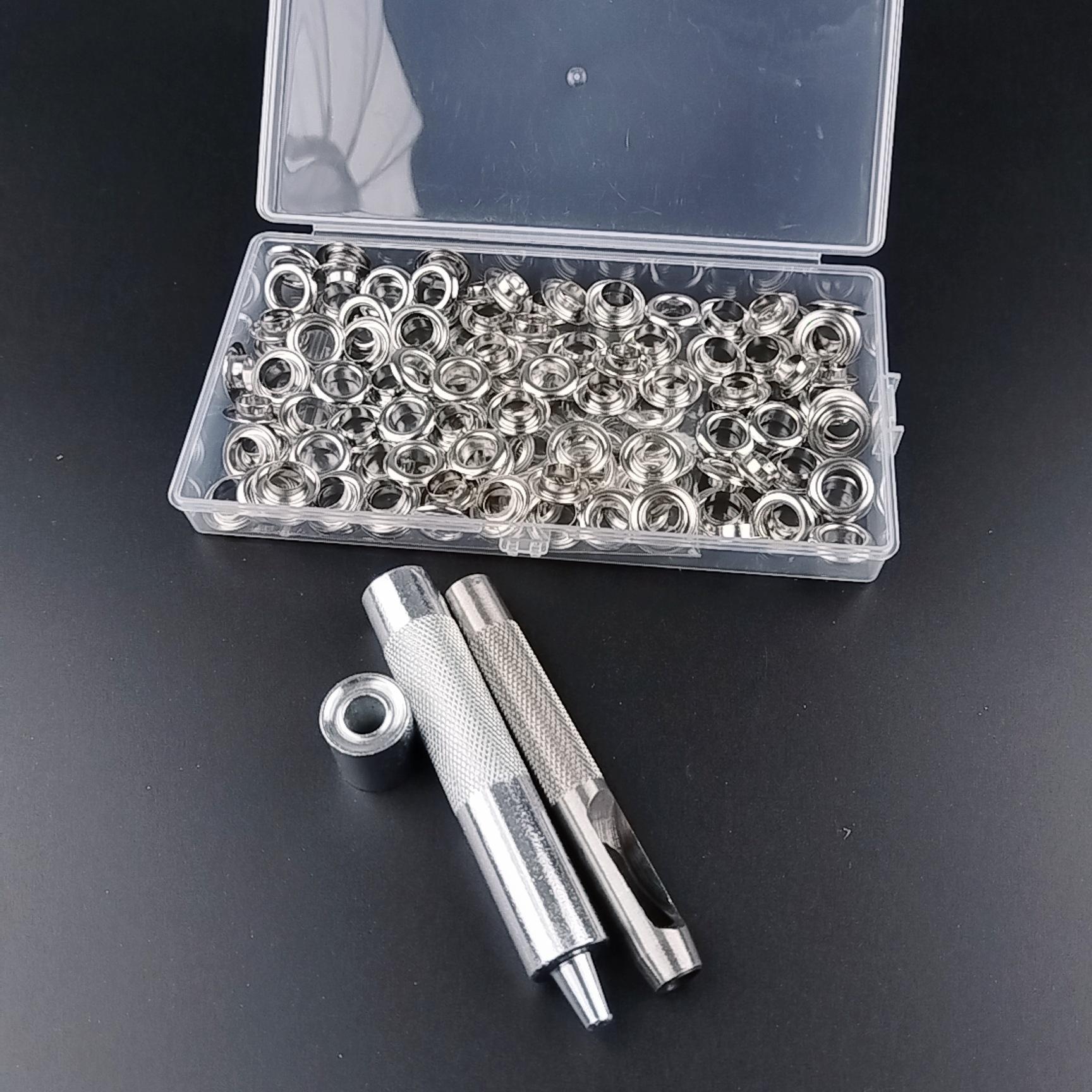 Detalhes: olhal de ar de 8 mm, 100 conjuntos, incluindo juntas* com base de 600# mais* punção cinza de 8 mm, 1 peça* caixa de armazenamento