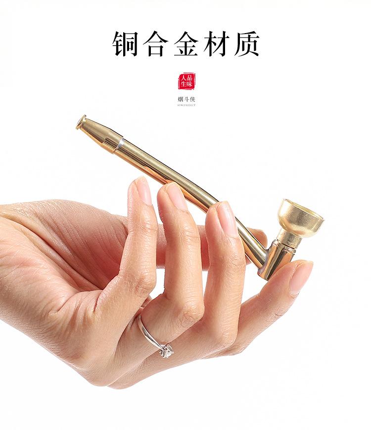 Pipa de latón tradicional a la antigua núcleo de filtro de metal varilla para tabaco seco de triple propósito para aniquilación de humo grueso y fino mini portátil desmontable