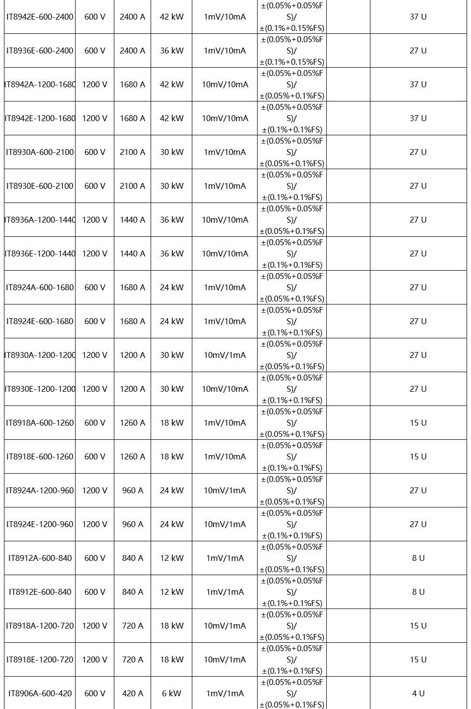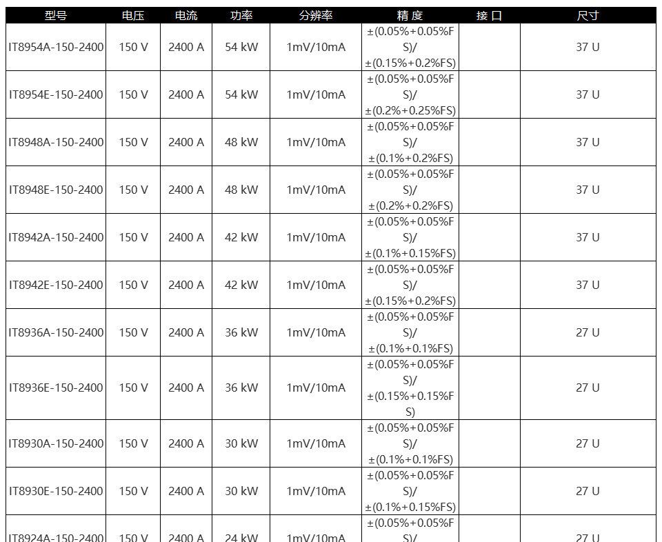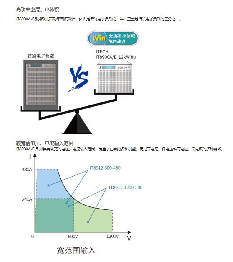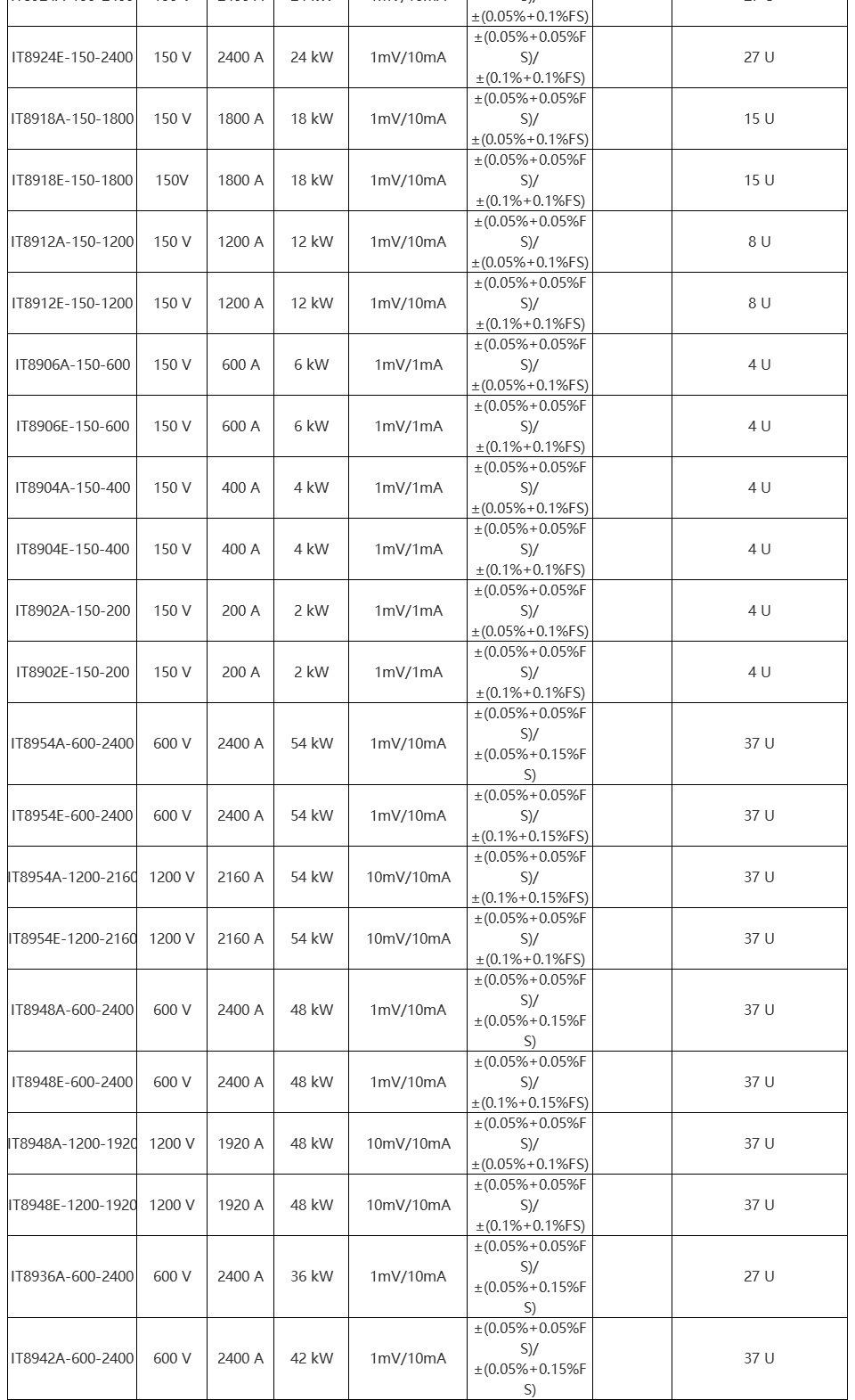 As cargas eletrônicas de alta densidade de potência e CC de alta potência da série IT8900A/E têm três faixas de tensão de 150 V, 600 V e 1200 V, e a potência de uma única máquina varia de 2 kW a 54 kW. Com uma ampla faixa de tensão e corrente, a corrente de um único gabinete pode atingir 2400 A. Por meio da conexão paralela mestre-escravo, a potência pode ser expandida para 600 kW. Alta densidade de potência, 6 kW com apenas 4u de altura. Até 8 modos de trabalho, com resposta de loop mais rápida e velocidade de subida e descida de corrente, bem como modo dinâmico, OCP, teste OPP, teste automático e funções de teste de bateria. Possui interfaces CAN, LAN, GPIB, USB, RS232 e analógicas integradas, etc., e possui uma variedade de funções de proteção. Pode ser usado para descarga de baterias de energia, pilhas de carregamento CC, carregadores de bordo (OBC), pilhas de células de combustível, eletrônica de potência e outros produtos de eletrônica de potência.