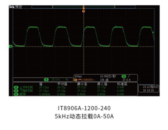 O modo dinâmico e o modo de lista da carga eletrônica da série IT8900A/E podem ser realizados no modo CC. Ao editar a largura do pulso do valor do passo e a inclinação de cada passo, uma variedade de sequências complexas pode ser gerada, permitindo que os usuários concluam vários testes de forma de onda portadora. No modo CC, a série IT8900A/E pode definir as velocidades de borda ascendente e descendente.