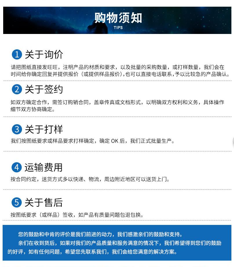 Shangrao Sansheng Optical Instrument Co., Ltd. está ubicada en el Edificio 7, Ciudad Óptica, Zona de Desarrollo Económico, Ciudad de Shangrao, Provincia de Jiangxi. Nuestra empresa se dedica principalmente a: procesamiento de piezas metálicas de instrumentos de precisión, procesamiento de hardware, procesamiento de metales para lentes ópticos, procesamiento de accesorios para instrumentos, procesamiento de accesorios metálicos para iluminación, procesamiento metálico de precisión para accesorios de automóviles y motocicletas, cuerpos metálicos para linternas, accesorios metálicos para iluminación, cubiertas metálicas para accesorios de iluminación, procesamiento de oxidación de aluminio, procesamiento de productos de aluminio, procesamiento de productos de cobre, diversos tratamientos de oxidación de productos de aluminio, etc. Nuestra empresa se adhiere a la filosofía empresarial de "el cliente primero, seguir adelante" e insiste en el principio de "el cliente primero" para brindar servicios de alta calidad a nuestros clientes. Siempre nos adherimos al cliente primero, servimos a los clientes de todo corazón e insistimos en utilizar nuestros servicios para impresionar a los clientes. Bienvenidos todos a visitar y guiar nuestro trabajo. Si tienen alguna pregunta, pueden llamarnos en cualquier momento y haremos todo lo posible para resolverla por ustedes. ¡Este es nuestro deber! ¡Su satisfacción es la búsqueda incesante de Shangrao Sansheng Optical Instrument Co., Ltd.! Bienvenidos a llamar para consultar o visitar nuestra empresa, ¡les serviremos de todo corazón!