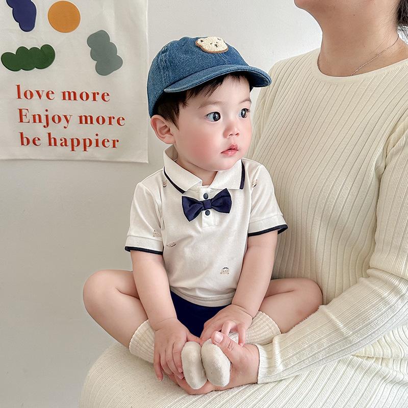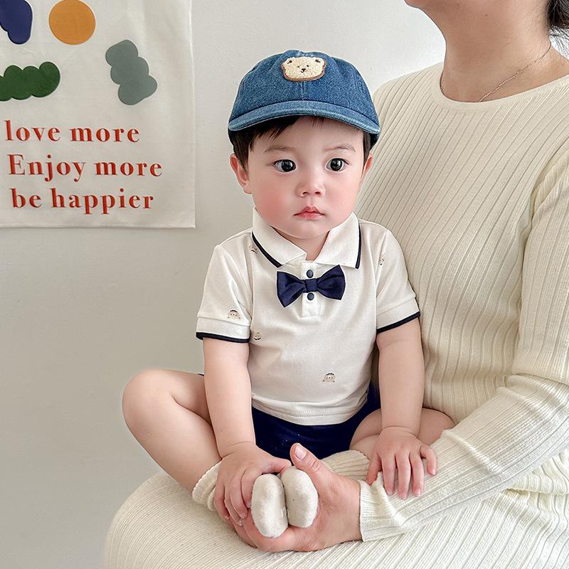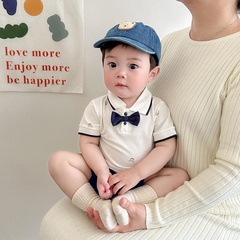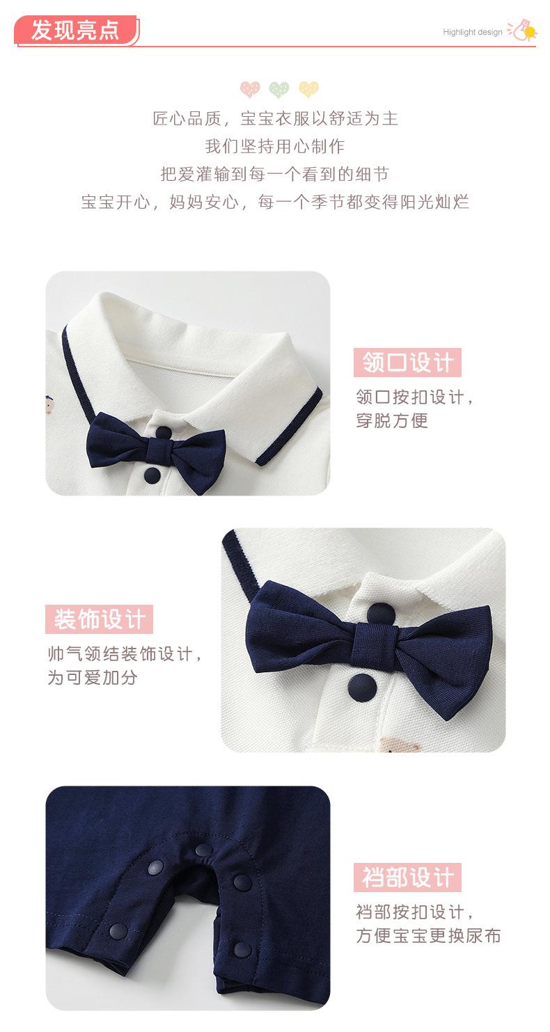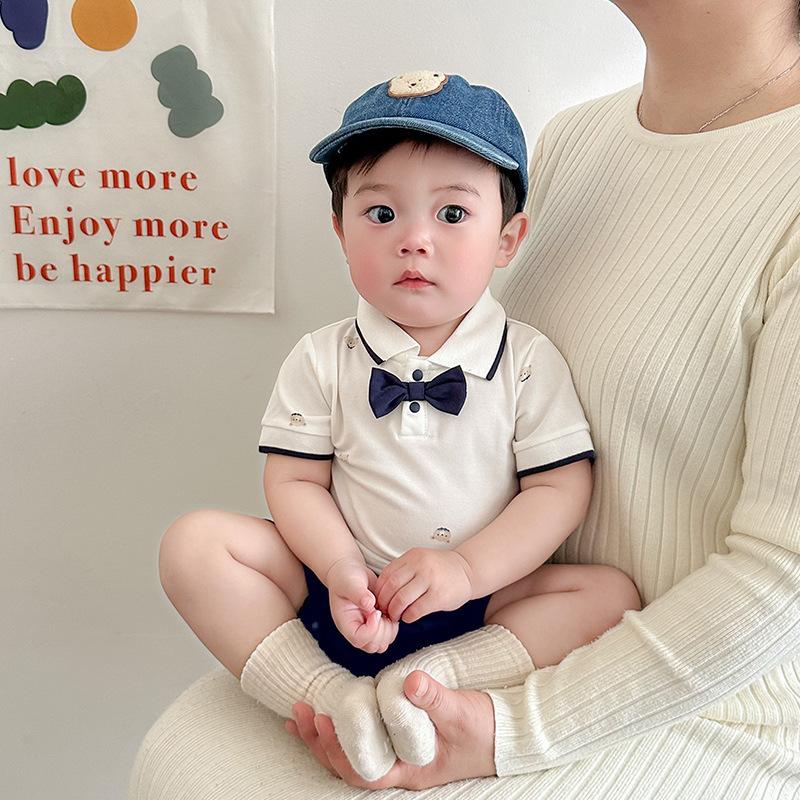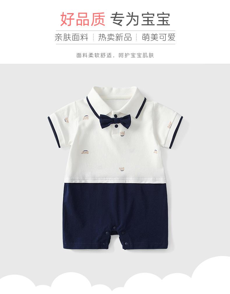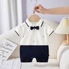 Ropa de Bebé Verano Traje de Bebé para Niño de Una Pieza Pajarita Pequeño Caballero Vestido de Bebé Cien Días Traje Delgado para Gatear