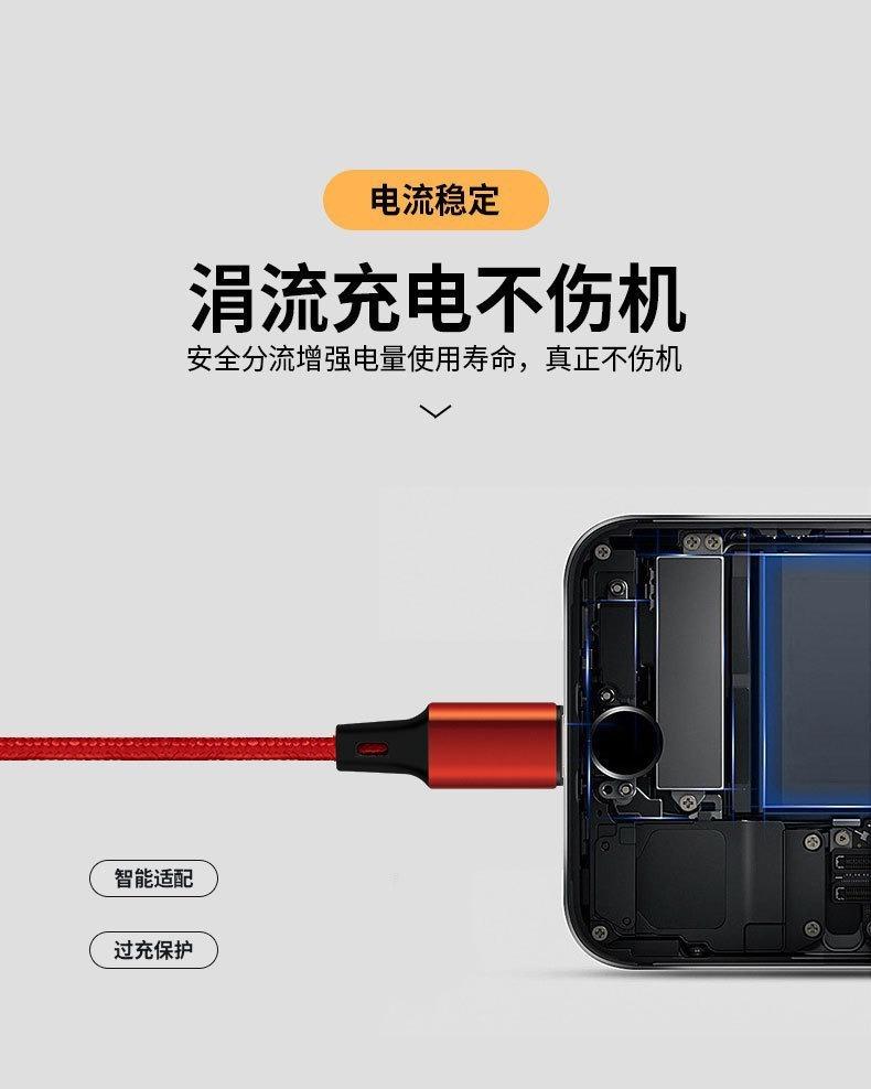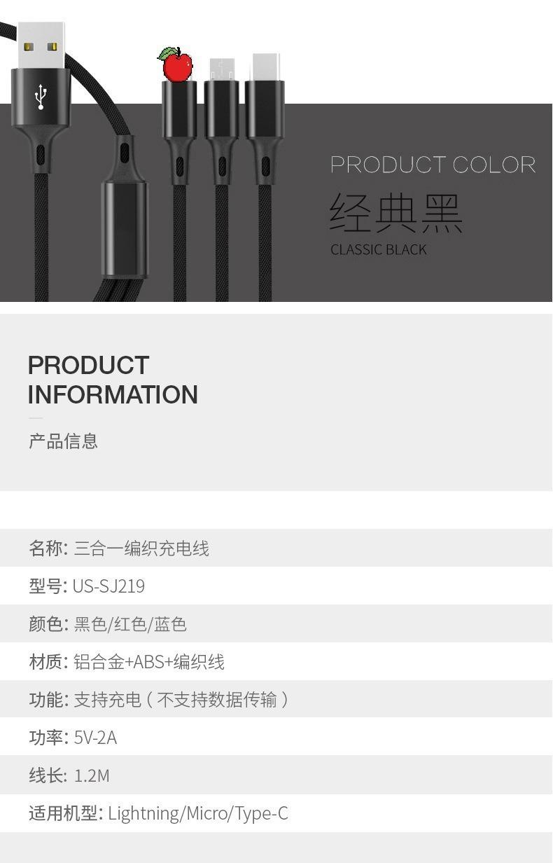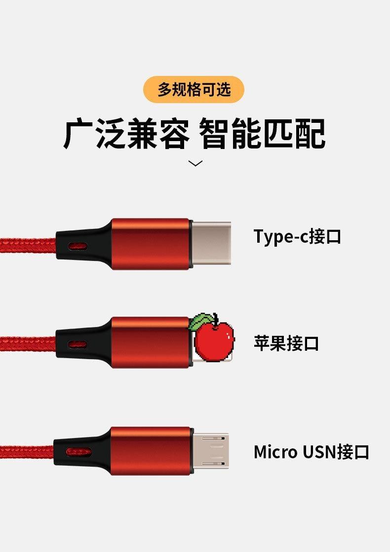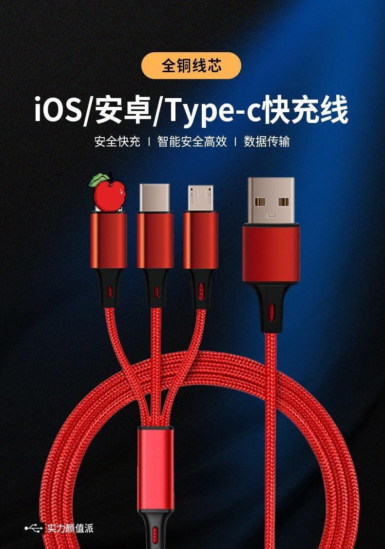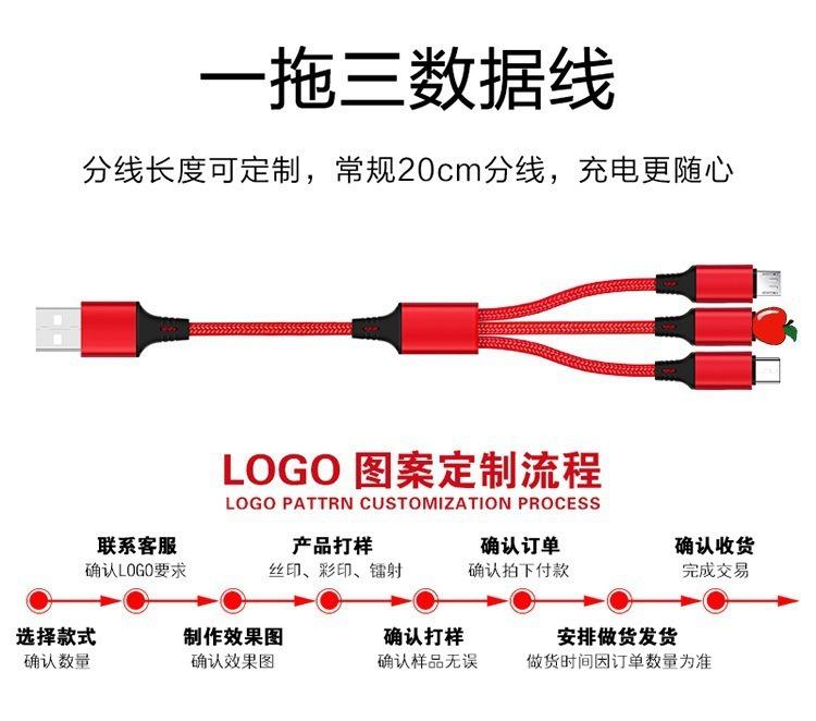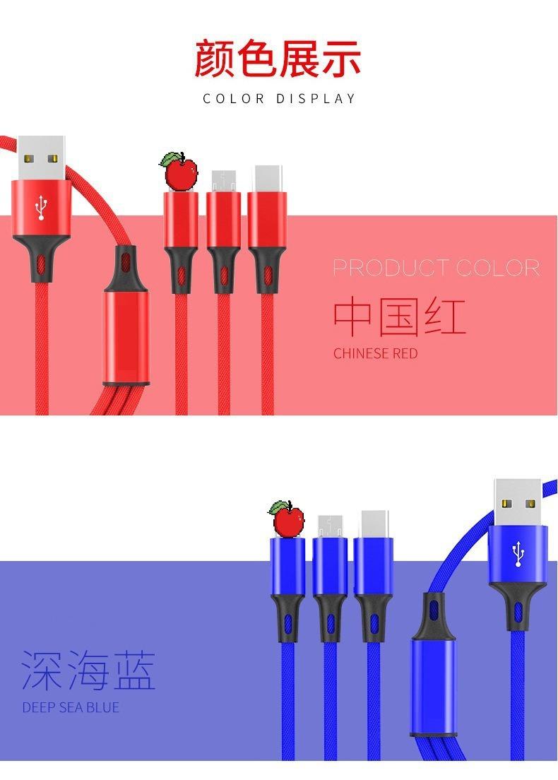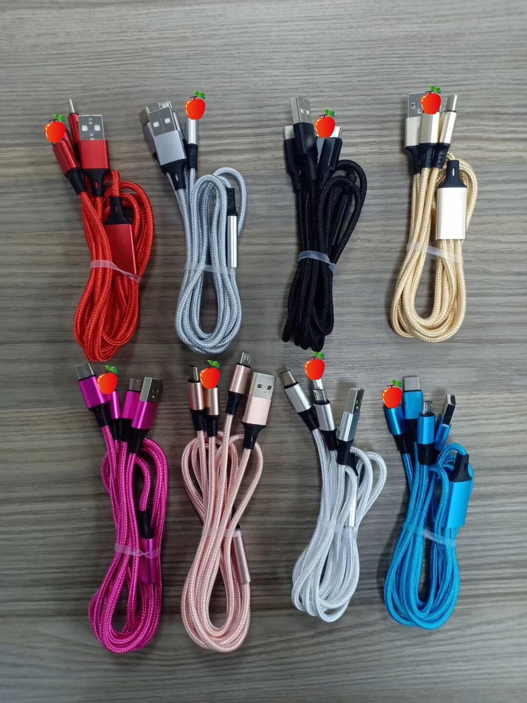 Nome do produto: Cabo de dados de carregamento rápido trançado de um a três para presente de comércio exterior