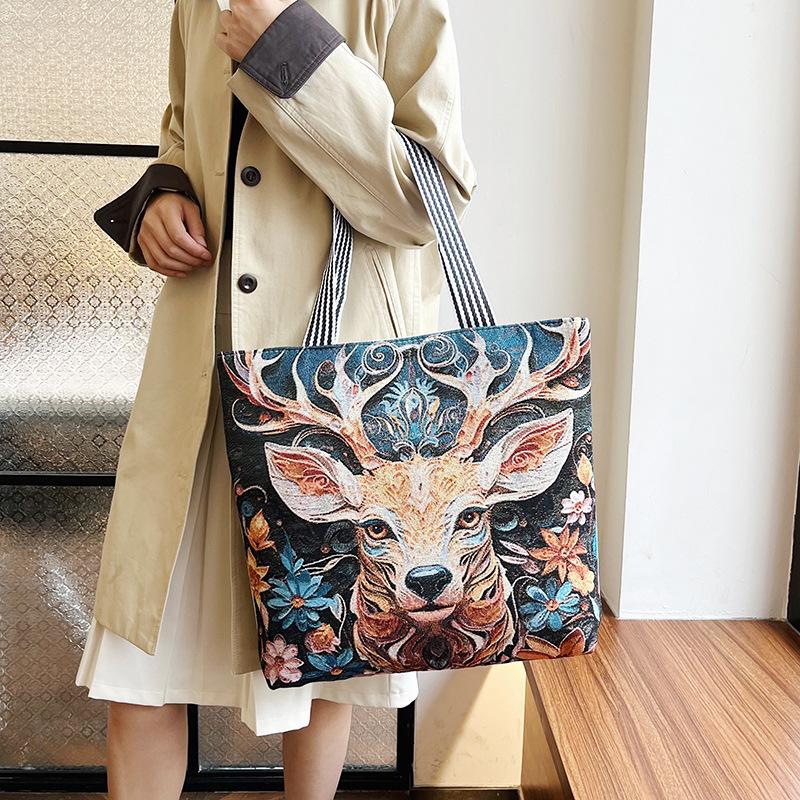 Bolsa Tote Bordada 3D Estilo Étnico OEM Personalizada