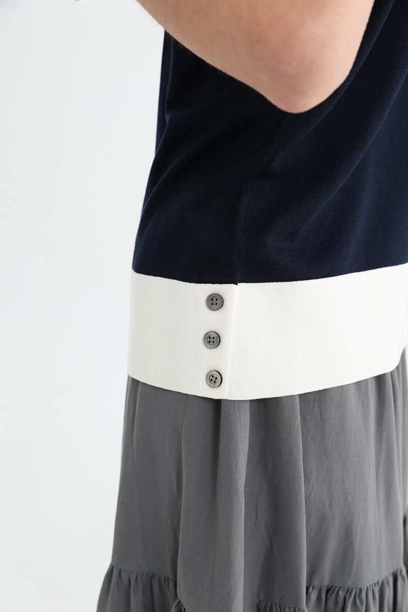 El botón de cuello contrastante es llamativo y fácil de llevar