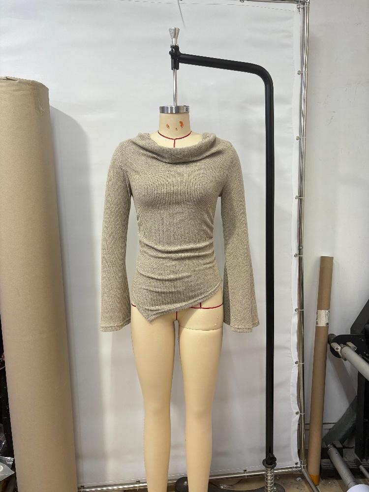 Estilo de Cuello y Métodos de Uso: Presenta un diseño único de cuello cowl, con una caída natural que crea una atmósfera perezosa y relajada.; se puede bajar fácilmente para transformarse en un estilo de hombros descubiertos, haciendo que el top sea usable de dos maneras y permitiendo un cambio a un estilo sexy.