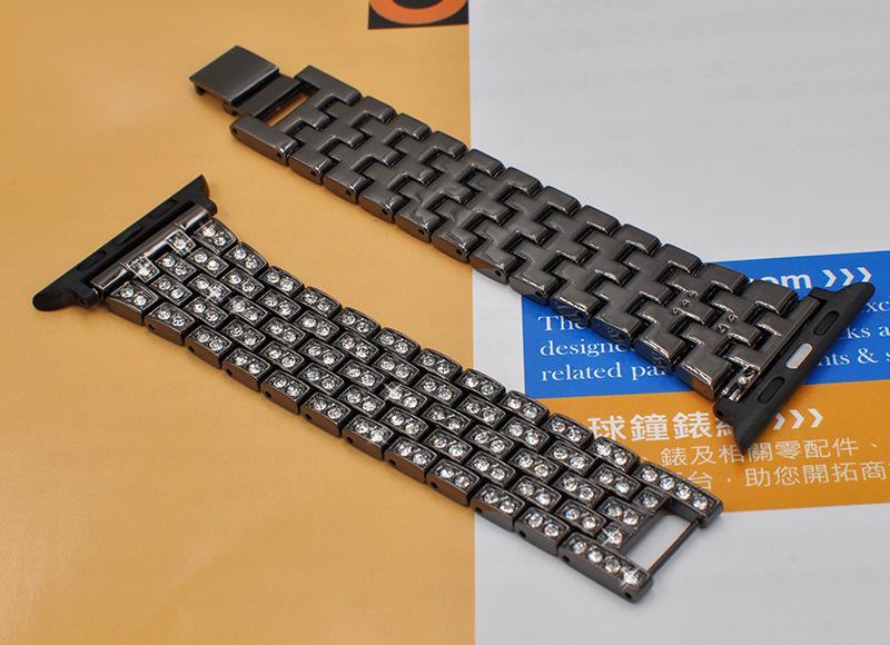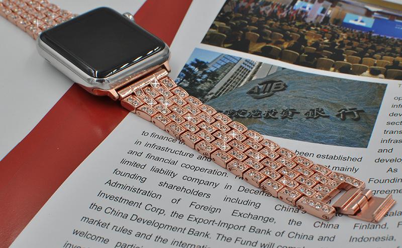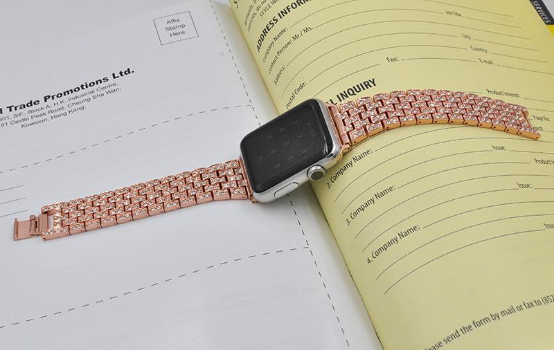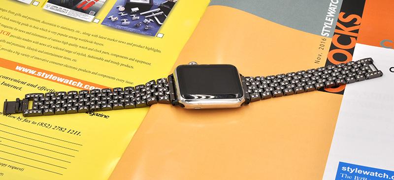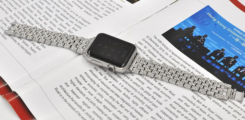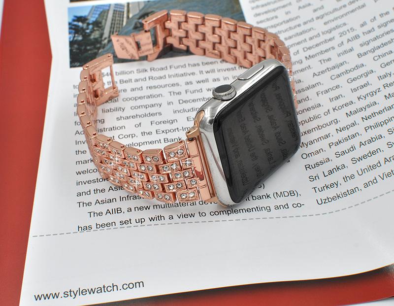 Pulseira de Aço Inoxidável com Diamantes Completos para Apple Watch