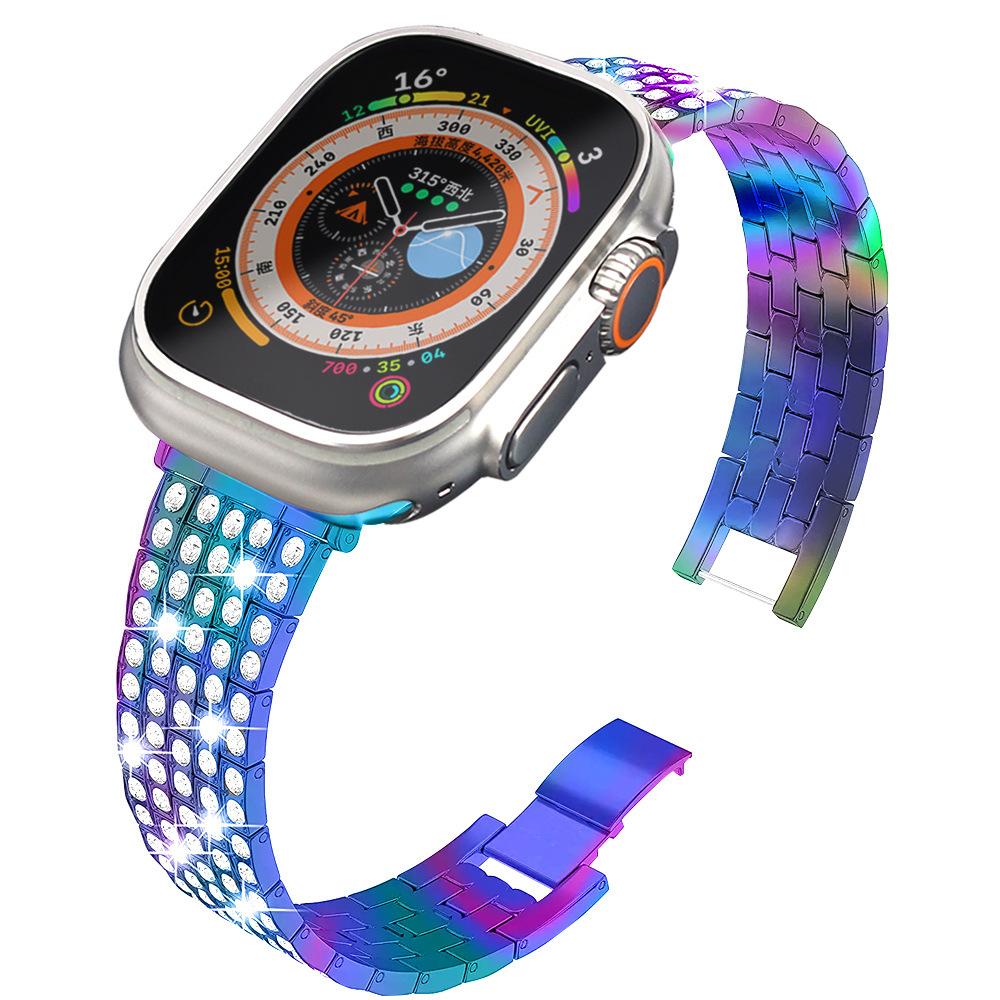Adequado para 12345678 ultra pulseira de metal cravejada de diamantes da apple iwatch