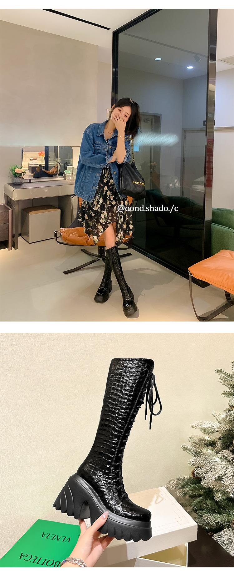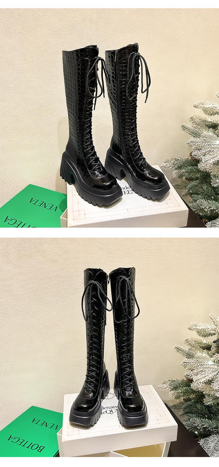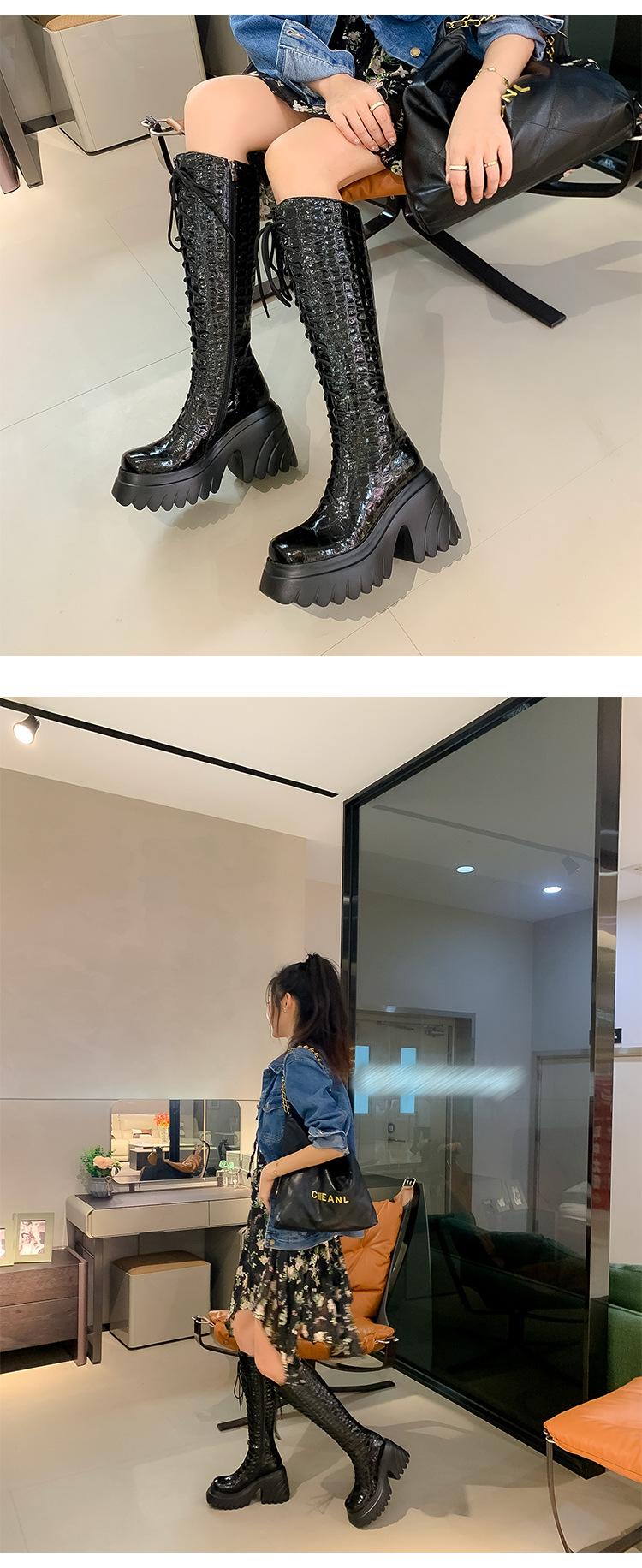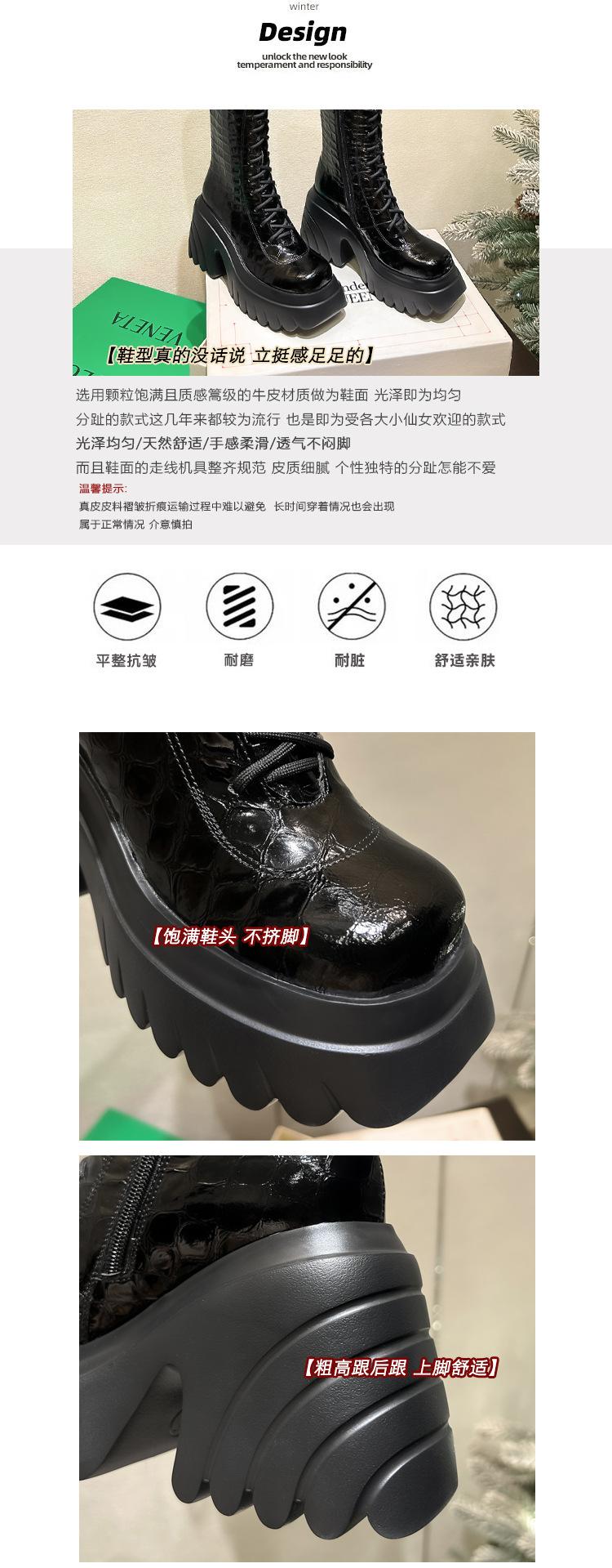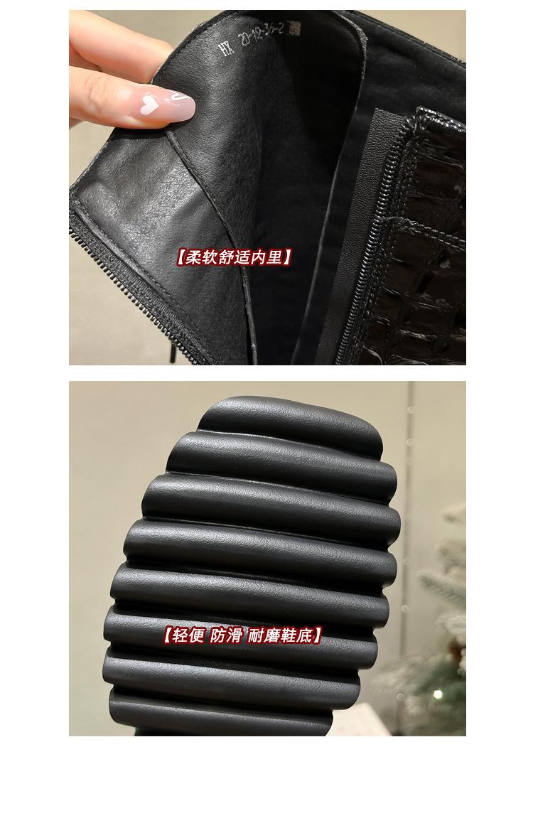Moda Estilo Británico Correa Adelgazante Botas de Caballero 2024 Otoño e Invierno Nuevo Fondo Grueso Tacón Grueso Cremallera Lateral Botas Aumentadas
