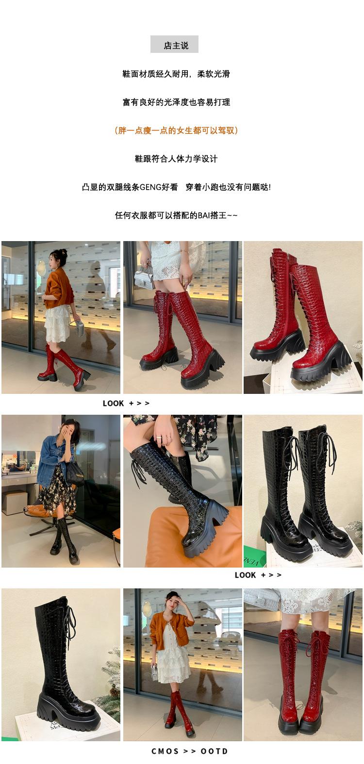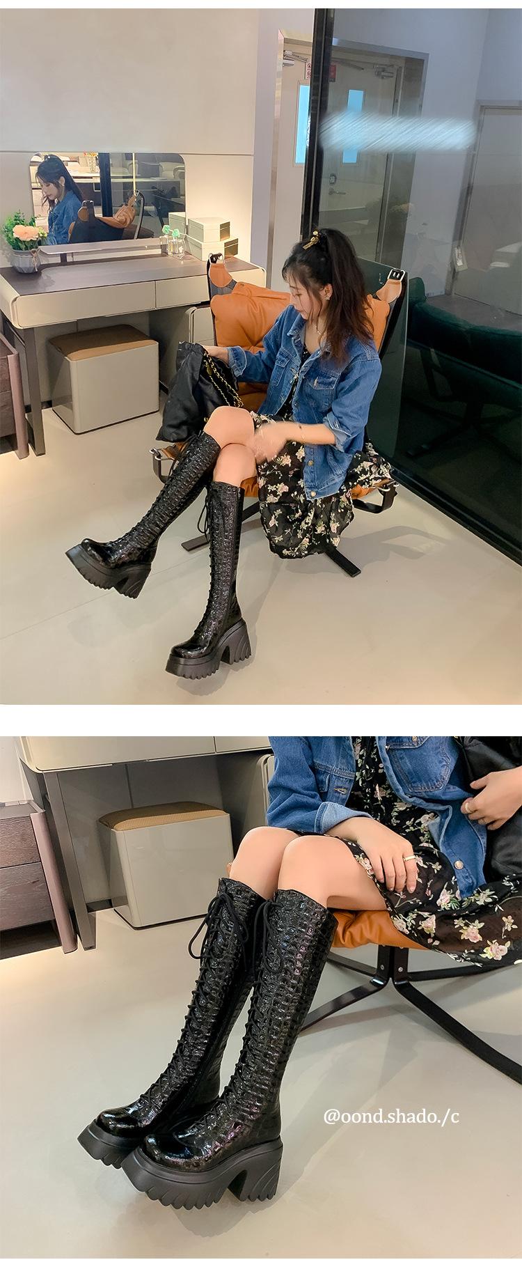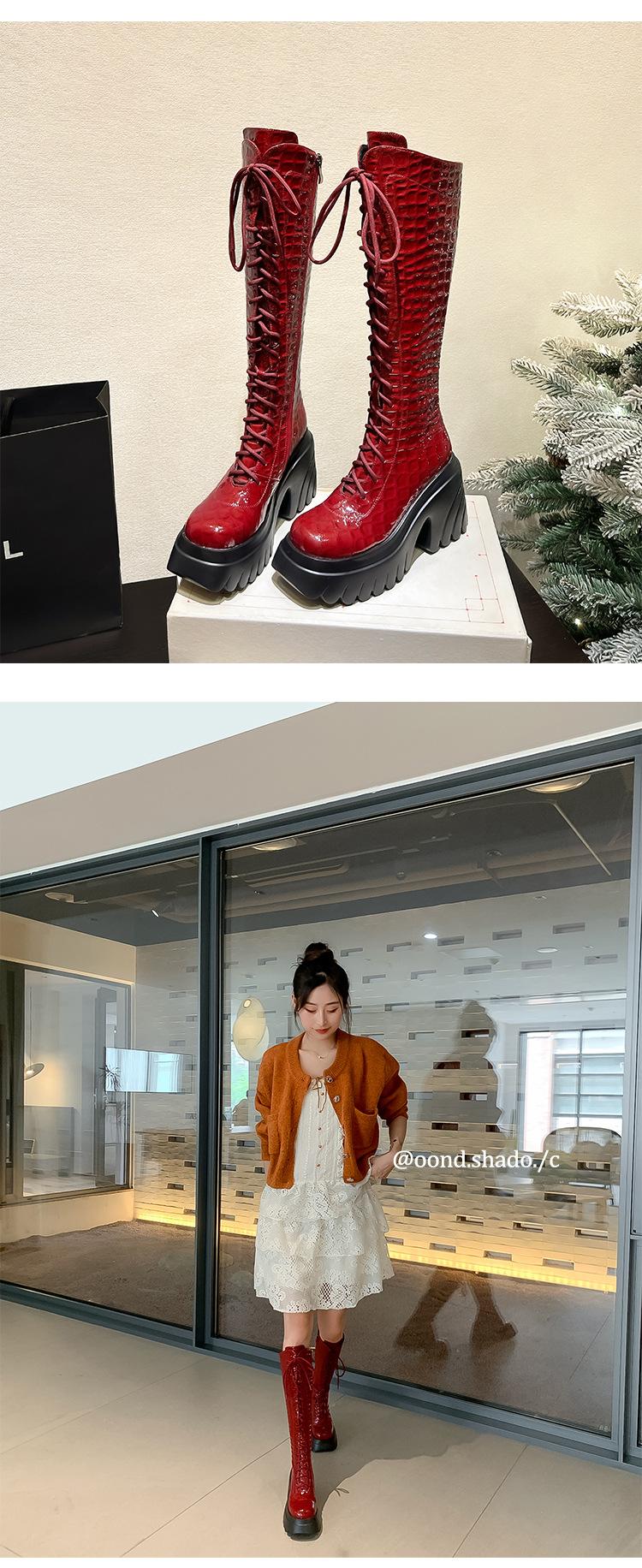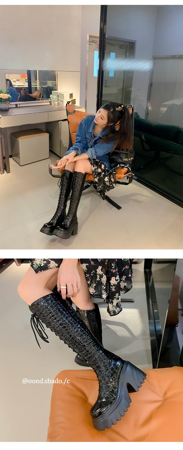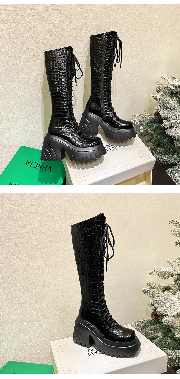 Moda Estilo Británico Correa Adelgazante Botas de Caballero 2024 Otoño e Invierno Nuevo Fondo Grueso Tacón Grueso Cremallera Lateral Botas Aumentadas