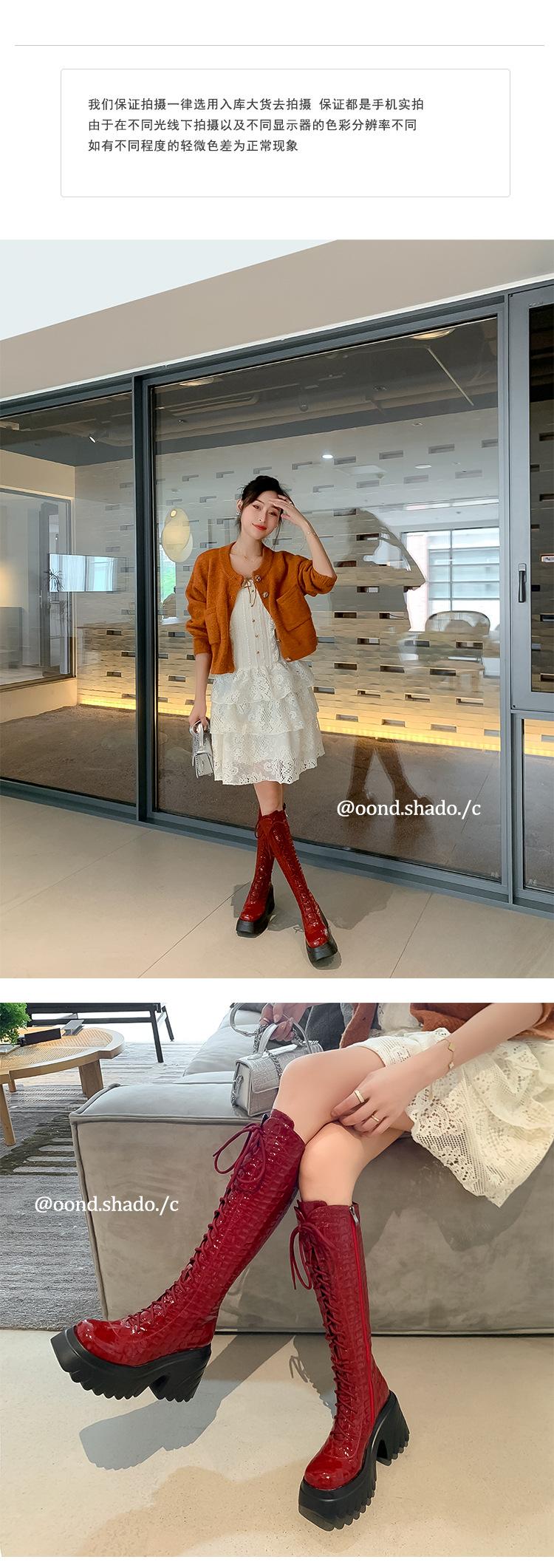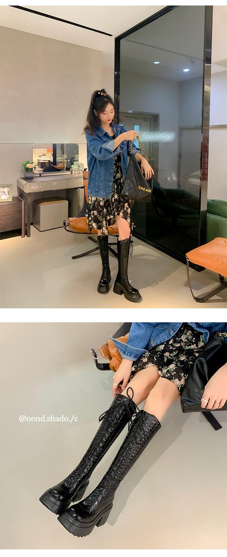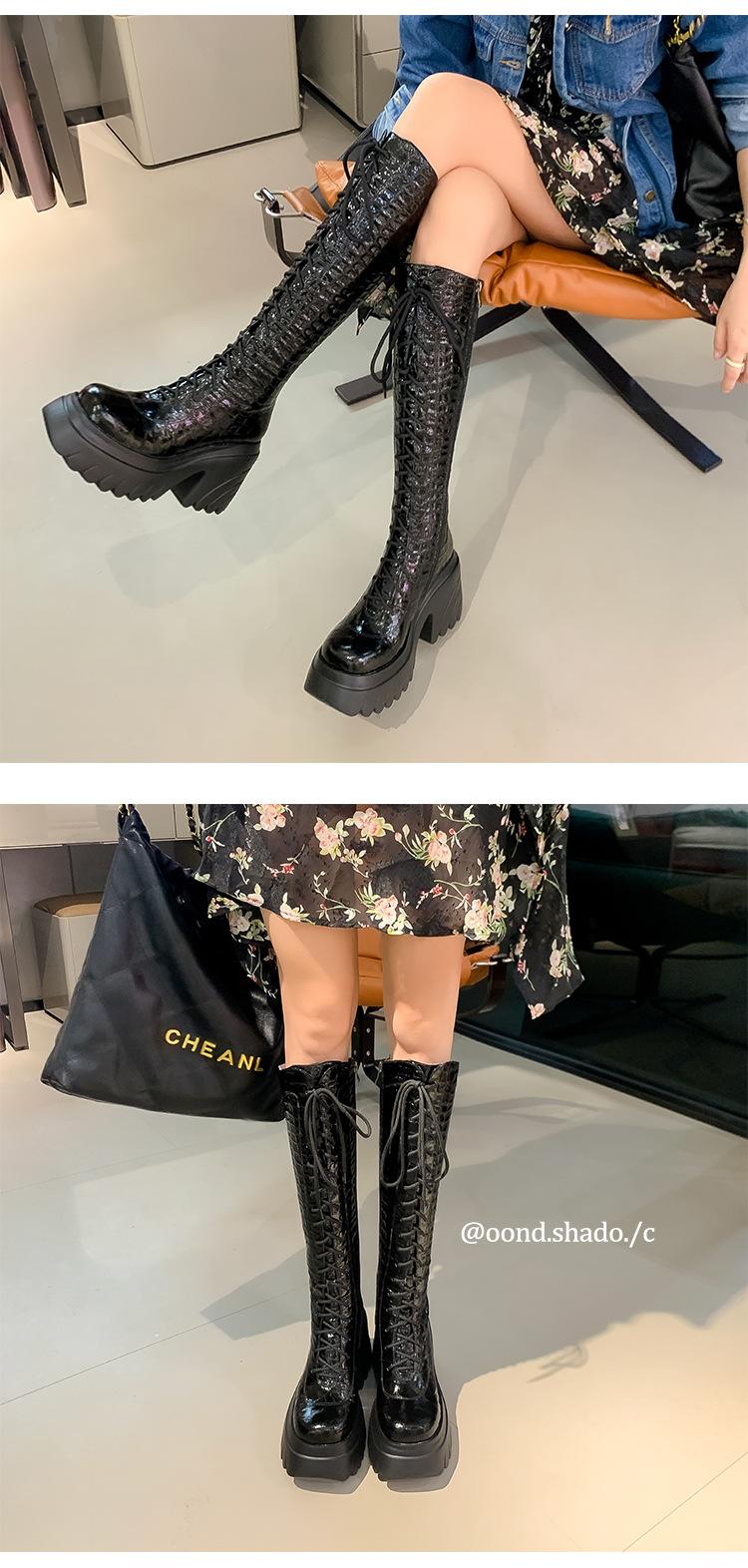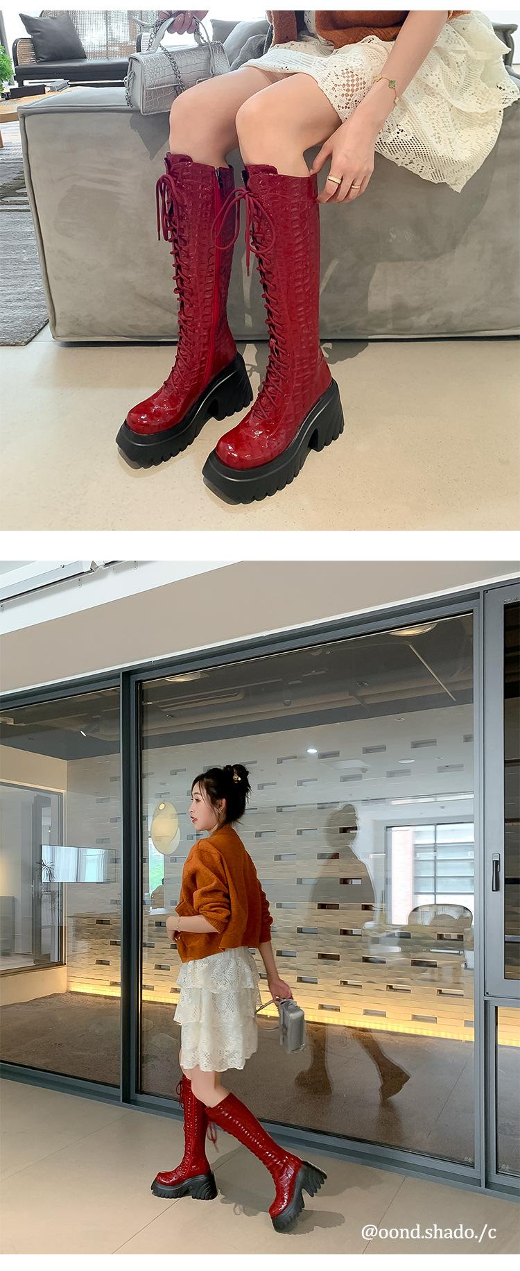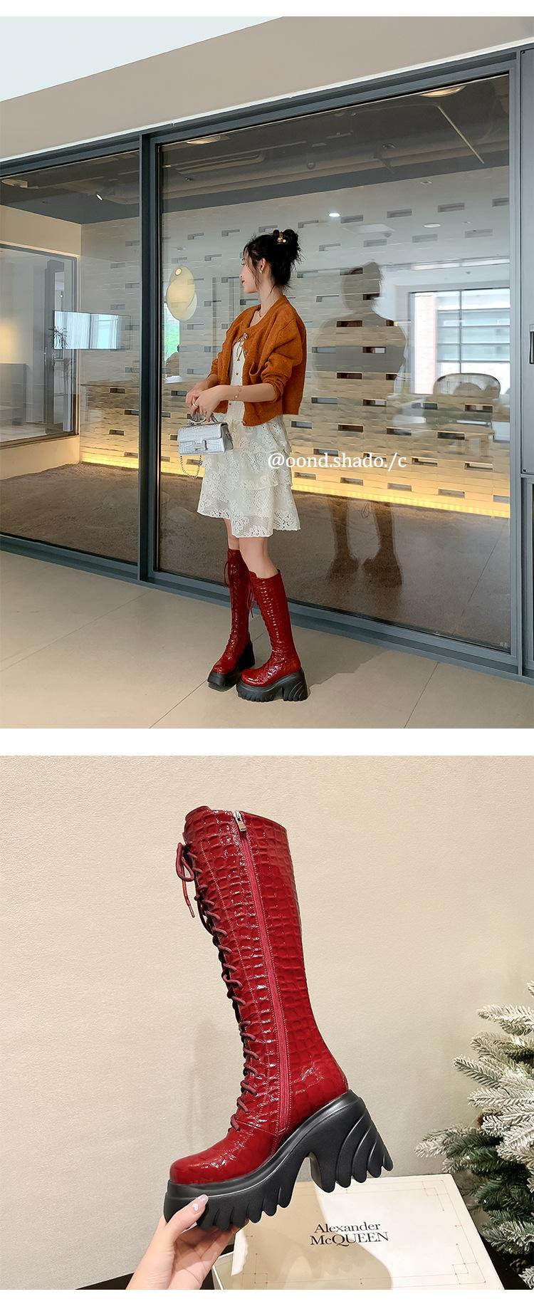 Moda Estilo Británico Correa Adelgazante Botas de Caballero 2024 Otoño e Invierno Nuevo Fondo Grueso Tacón Grueso Cremallera Lateral Botas Aumentadas