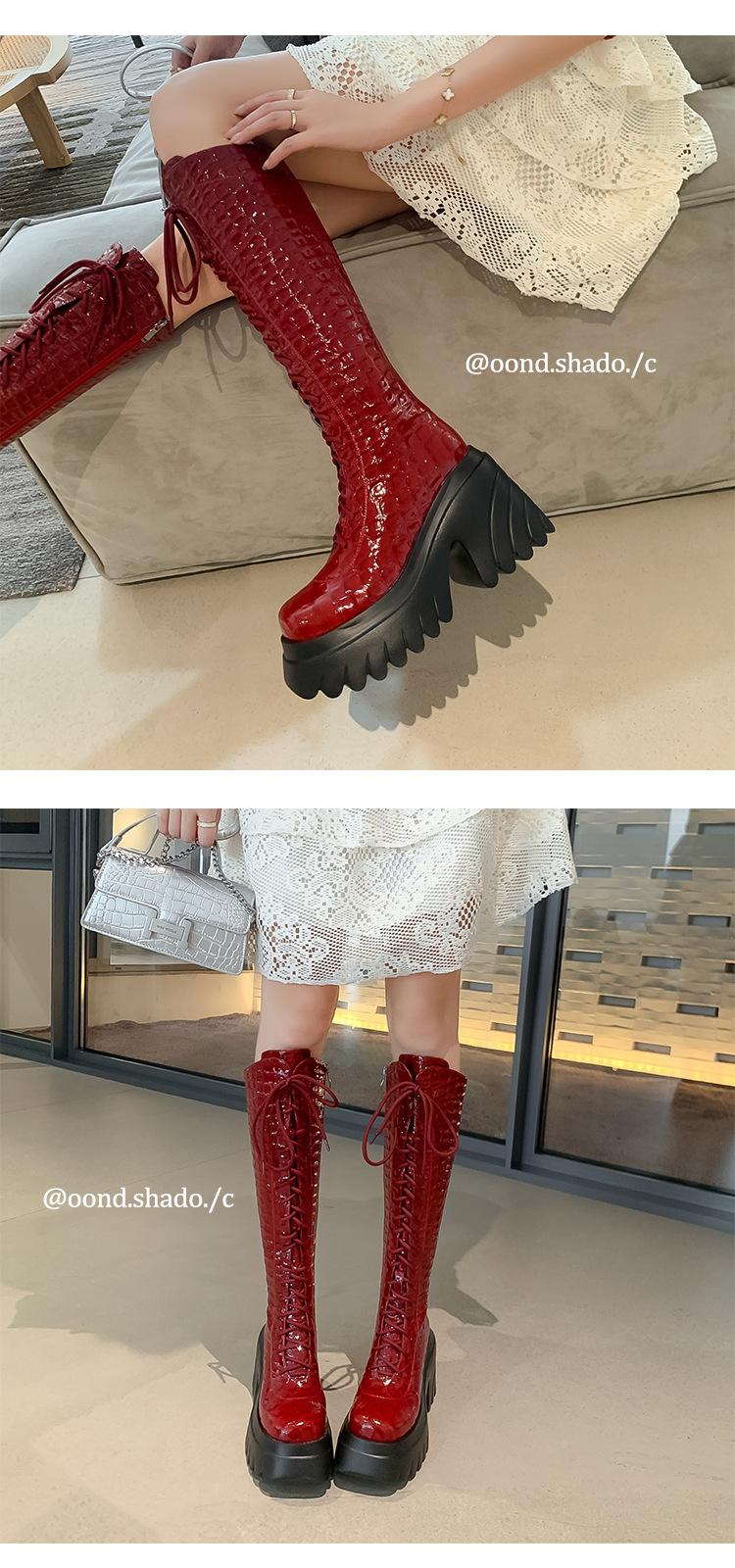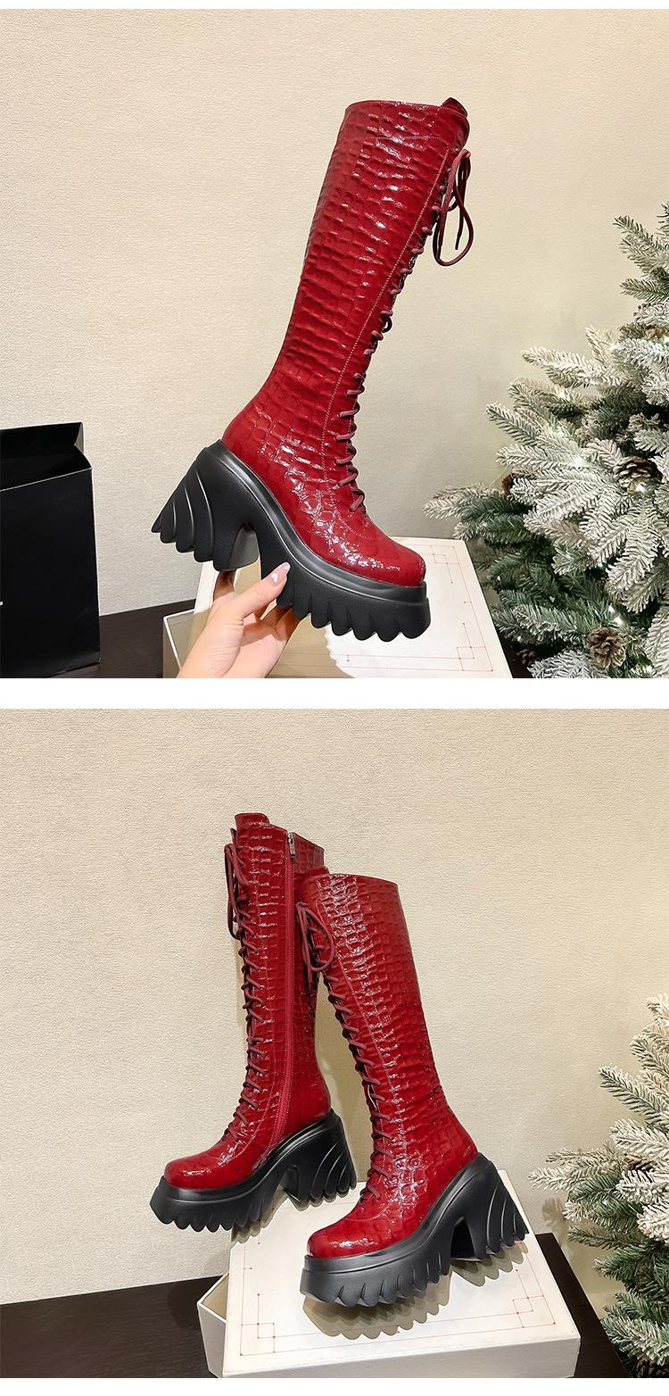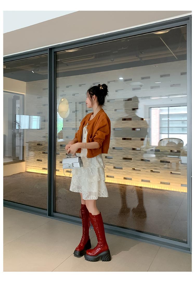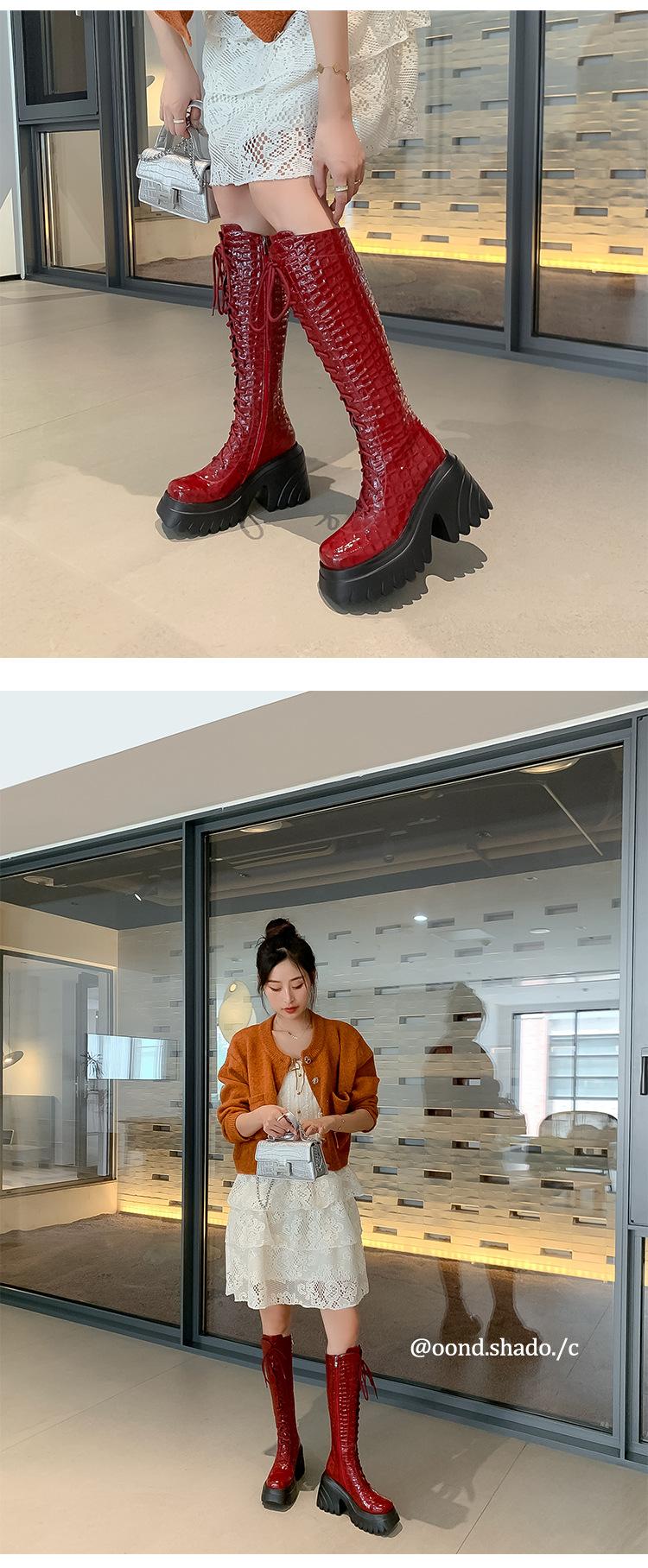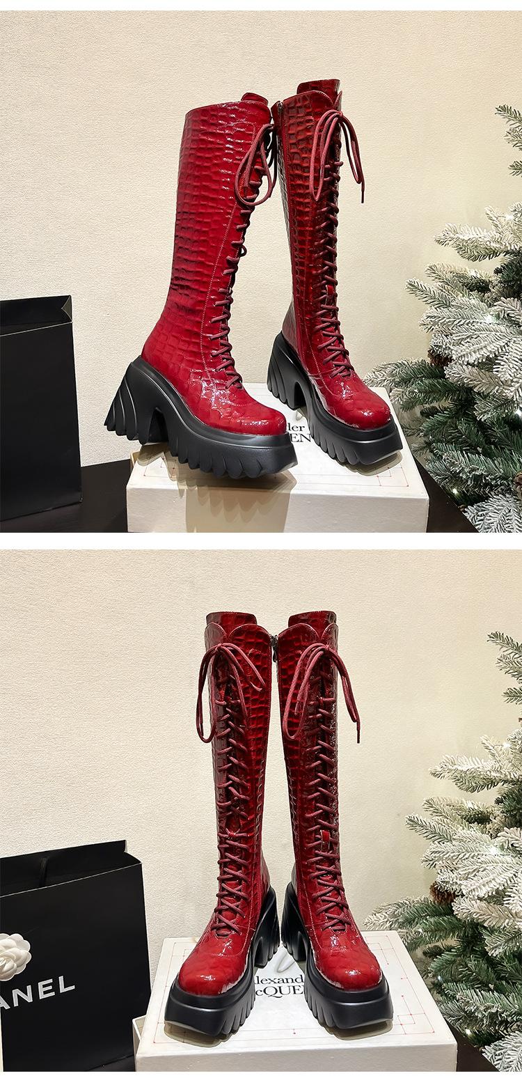 Moda Estilo Británico Correa Adelgazante Botas de Caballero 2024 Otoño e Invierno Nuevo Fondo Grueso Tacón Grueso Cremallera Lateral Botas Aumentadas