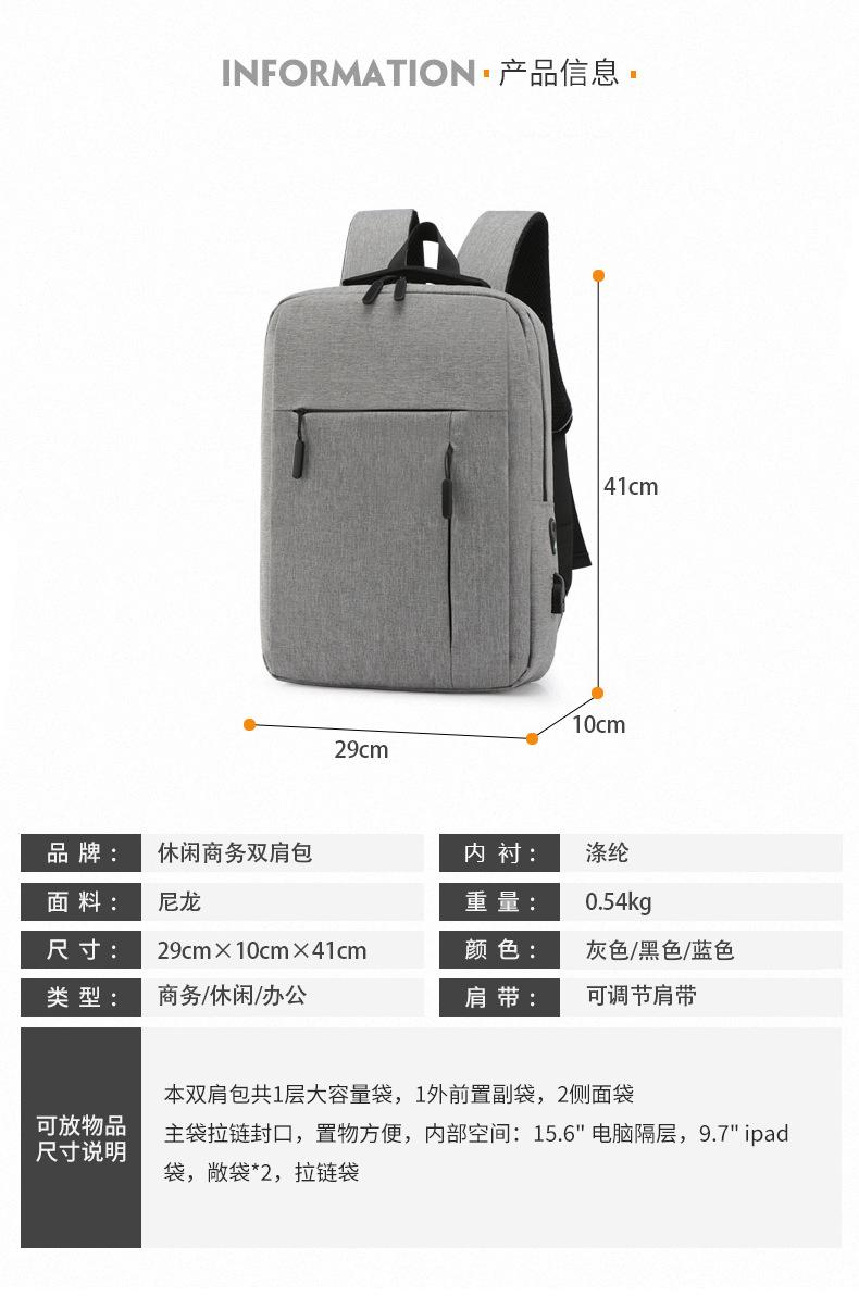 Fornecimento transfronteiriço de logotipo para impressão de logotipo USB mochila bolsa casual negócios notebook masculino uma geração de cabelo