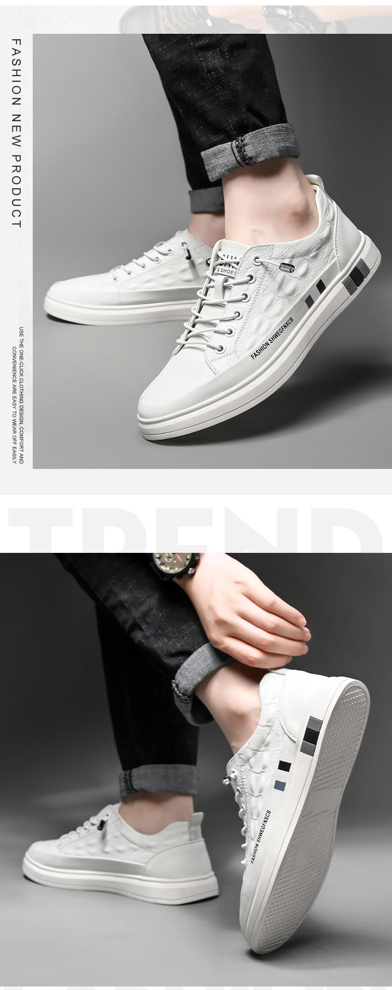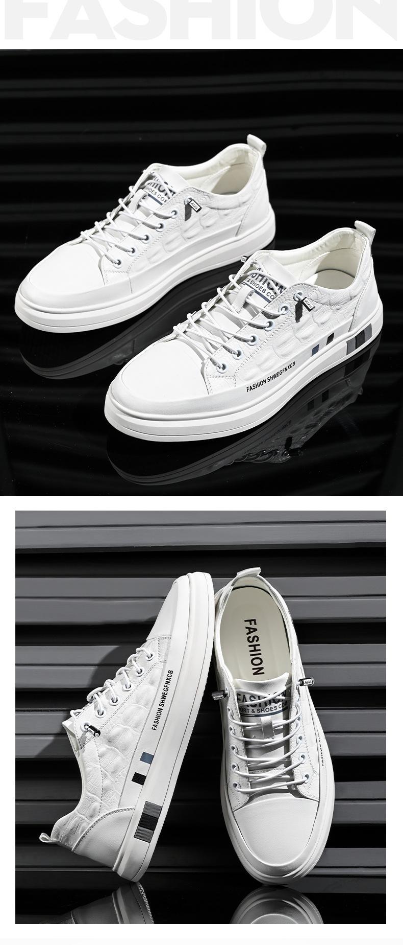 Sapatos Masculinos, Sapatos Casuais Brancos de Outono, Sapatos Masculinos de Cano Baixo com Estampa de Crocodilo e Solado Macio, Sapatos Masculinos de Peça Única com Drop-Shipping, Respiráveis e Resistentes ao Desgaste