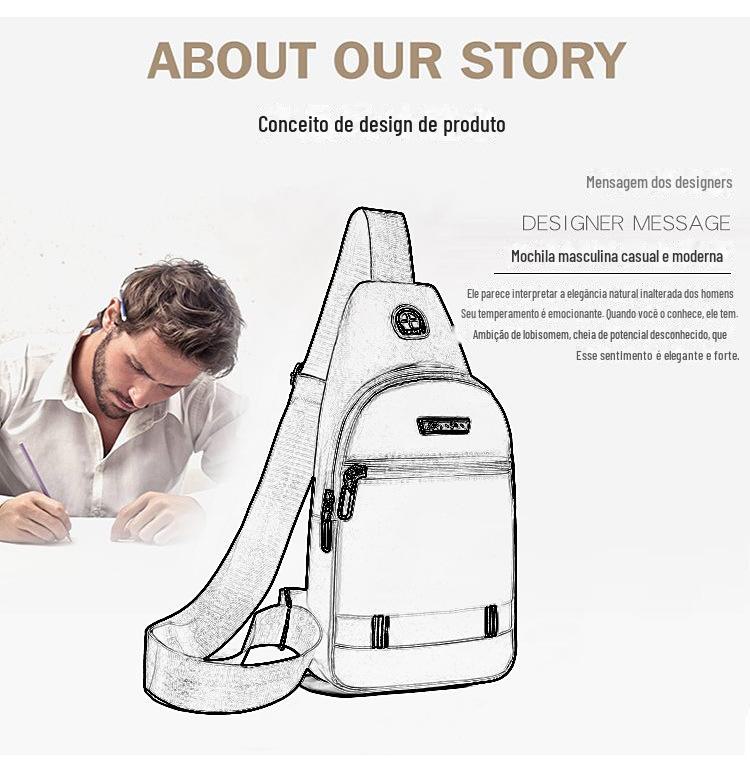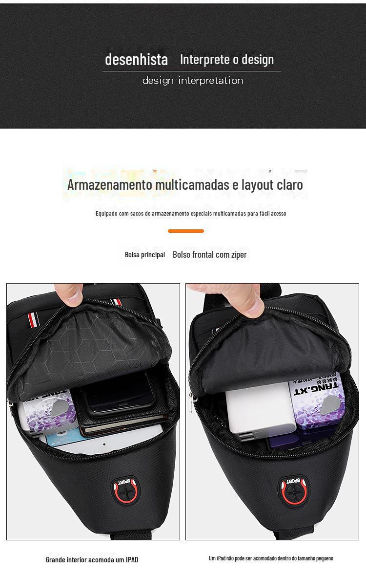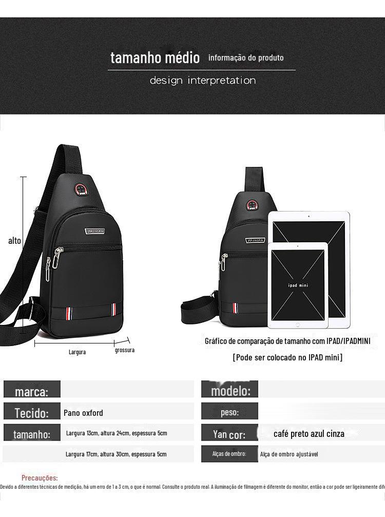 Bolsa Transversal Masculina Transfronteiriça, Simples e Versátil, Viagem de Negócios, Grande Capacidade, Bolsa Moderna Impermeável e Resistente ao Desgaste, Bolsa de Peito Masculina