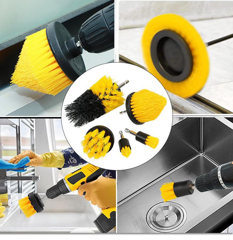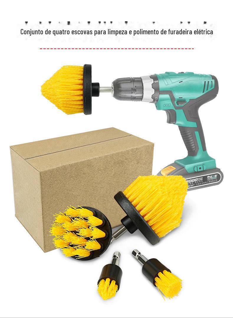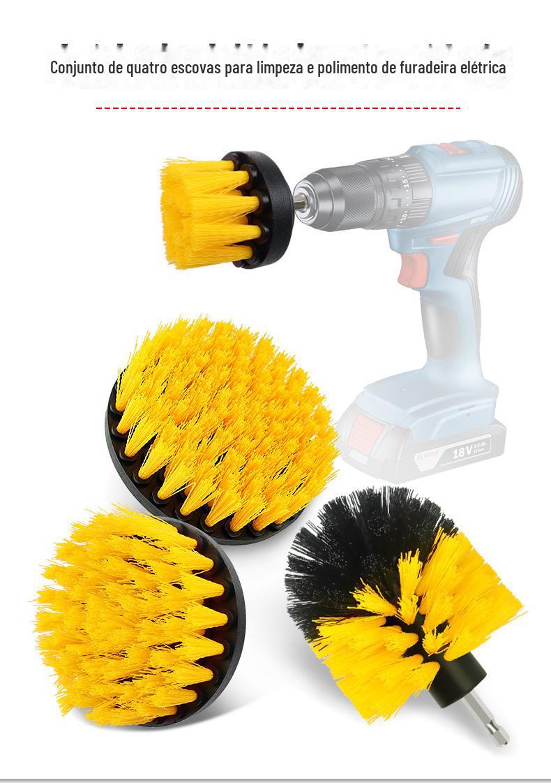 Cross-border escova de perfuração elétrica escova de limpeza de quatro peças de quatro peças de furadeira elétrica escova cabeça de roda de carro cubo de roda escova elétrica escova de perfuração terno