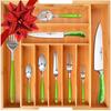 Caixa organizadora de gaveta em bambu para guardar roupas íntimas, organizador de utensílios de cozinha com divisórias e porta-facas expansível para armazenamento na cozinha.