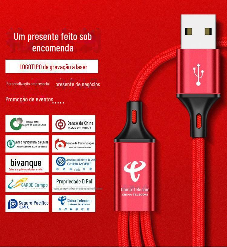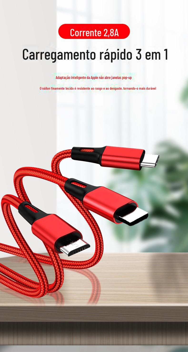 Fábrica atacado um para três cabo de dados para Huawei Android três em um cabo de dados Apple carga rápida presente logotipo
