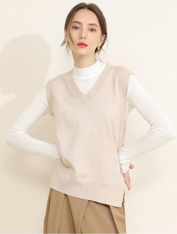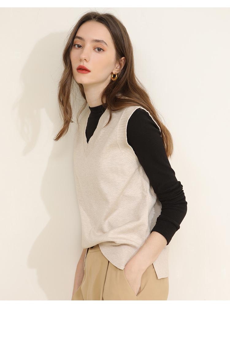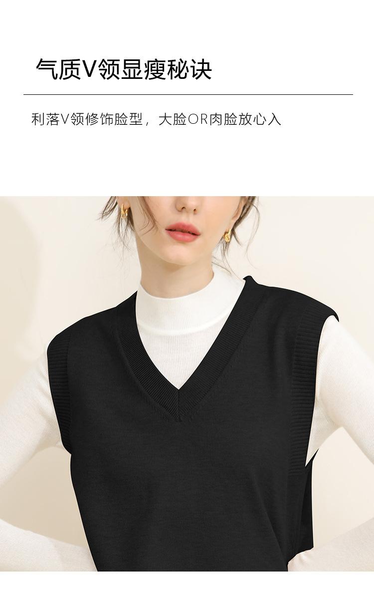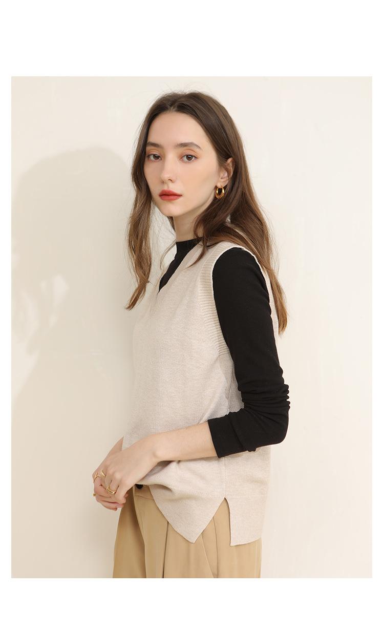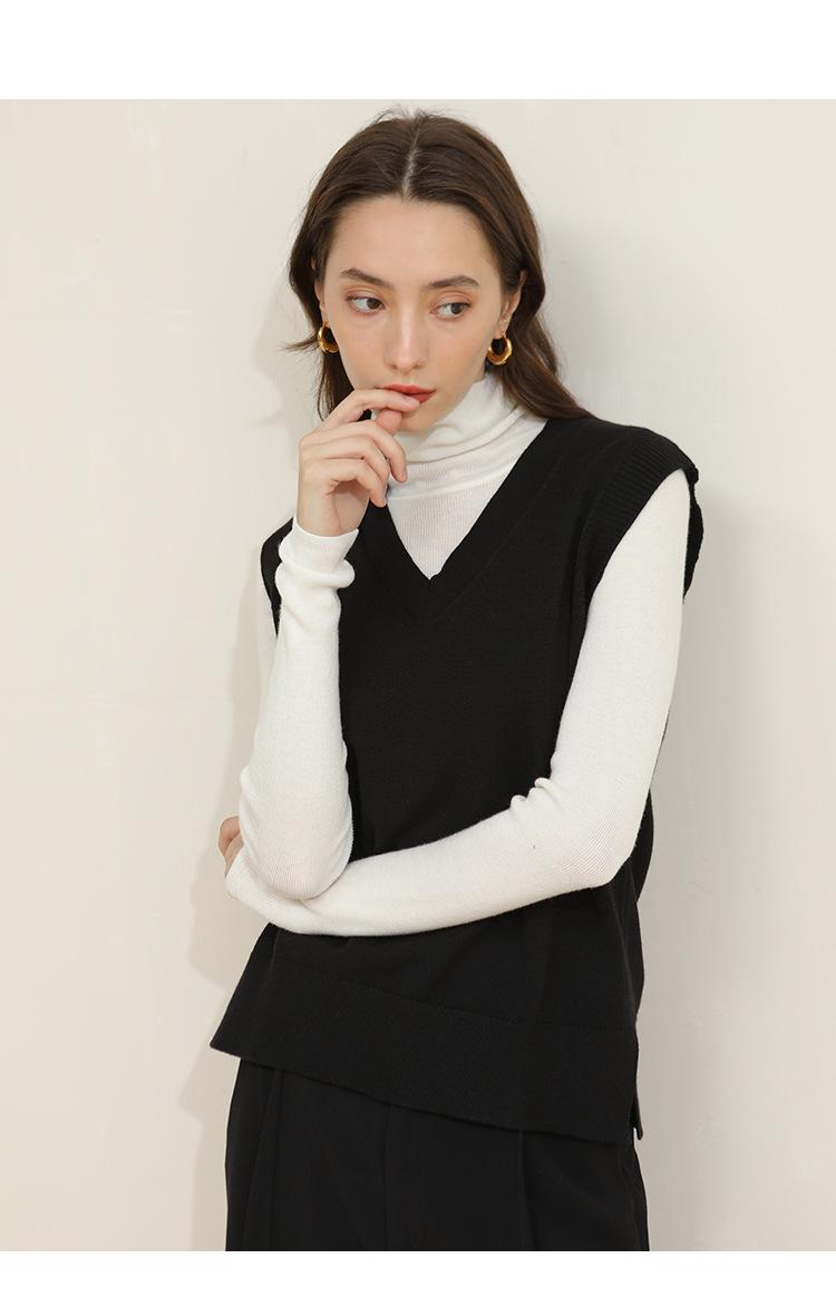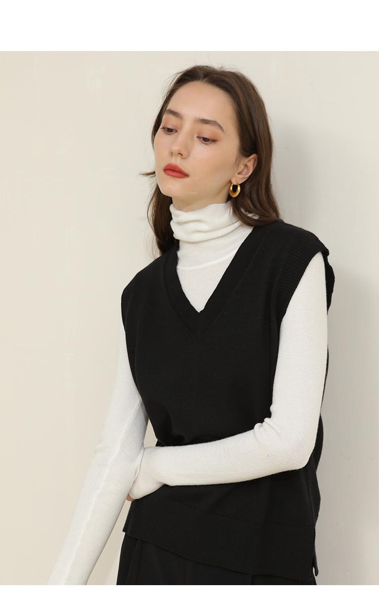 Colete de Tricô Canvaus Feminino Outono e Inverno Novo Gola Pulôver Cor Pura Quente para Usar por Baixo Tricô Manga Curta
