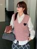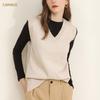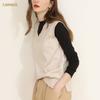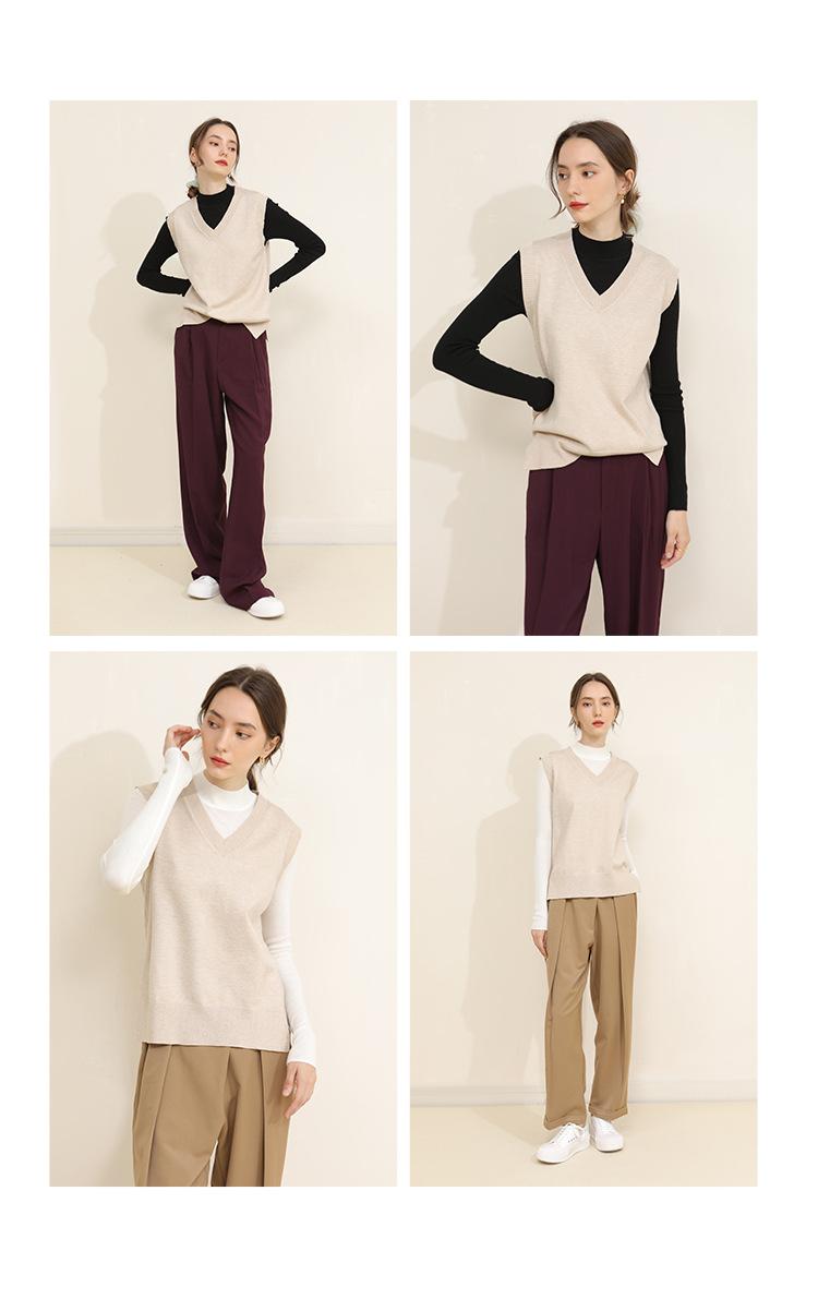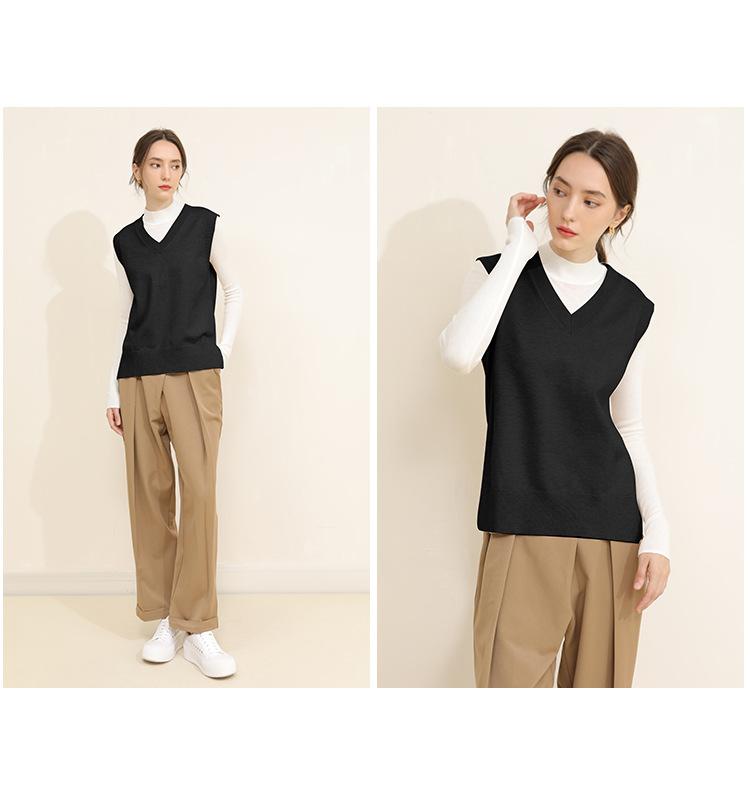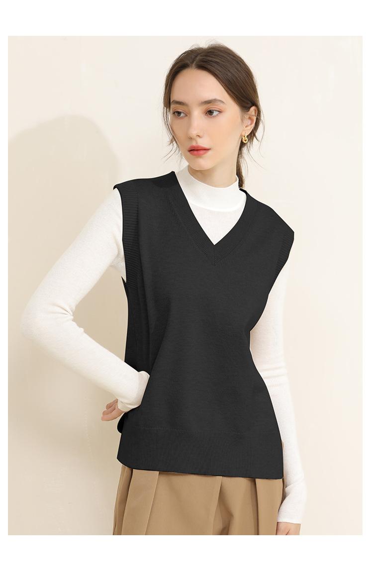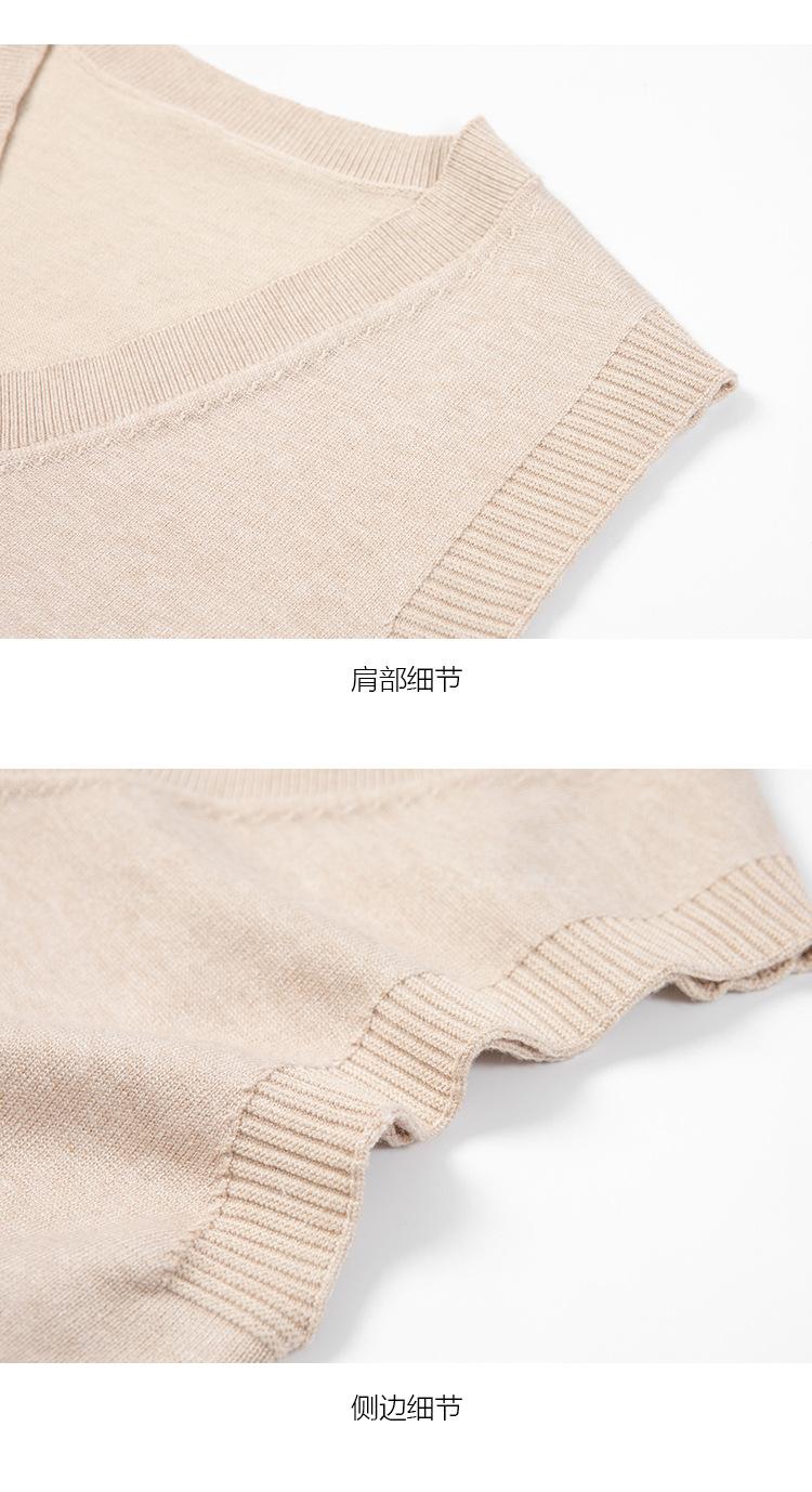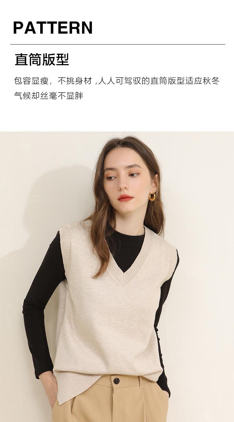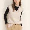 Colete de Tricô Canvaus Feminino Outono e Inverno Novo Gola Pulôver Cor Pura Quente para Usar por Baixo Tricô Manga Curta