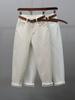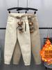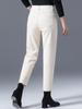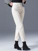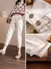 Jeans Off-White de Alta Qualidade para Mulheres Tamanho Grande 2024 Outono e Inverno Forrado com Lã Cintura Alta Elástico Solto Daddy Harem Cenoura