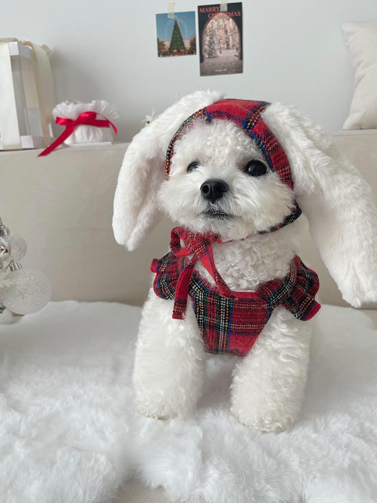 Renda respirável com saia princesa floral de camada dupla para filhotes na primavera e no verão, pelúcia para gatos, roupas para cães de pequeno e médio porte