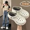 Cave Shoes Feminino Verão Altura-aumento Praia Salto Alto Baotou Chinelos Outer Wear 2023 Novas Sandálias Antiderrapantes Atacado para Mulheres