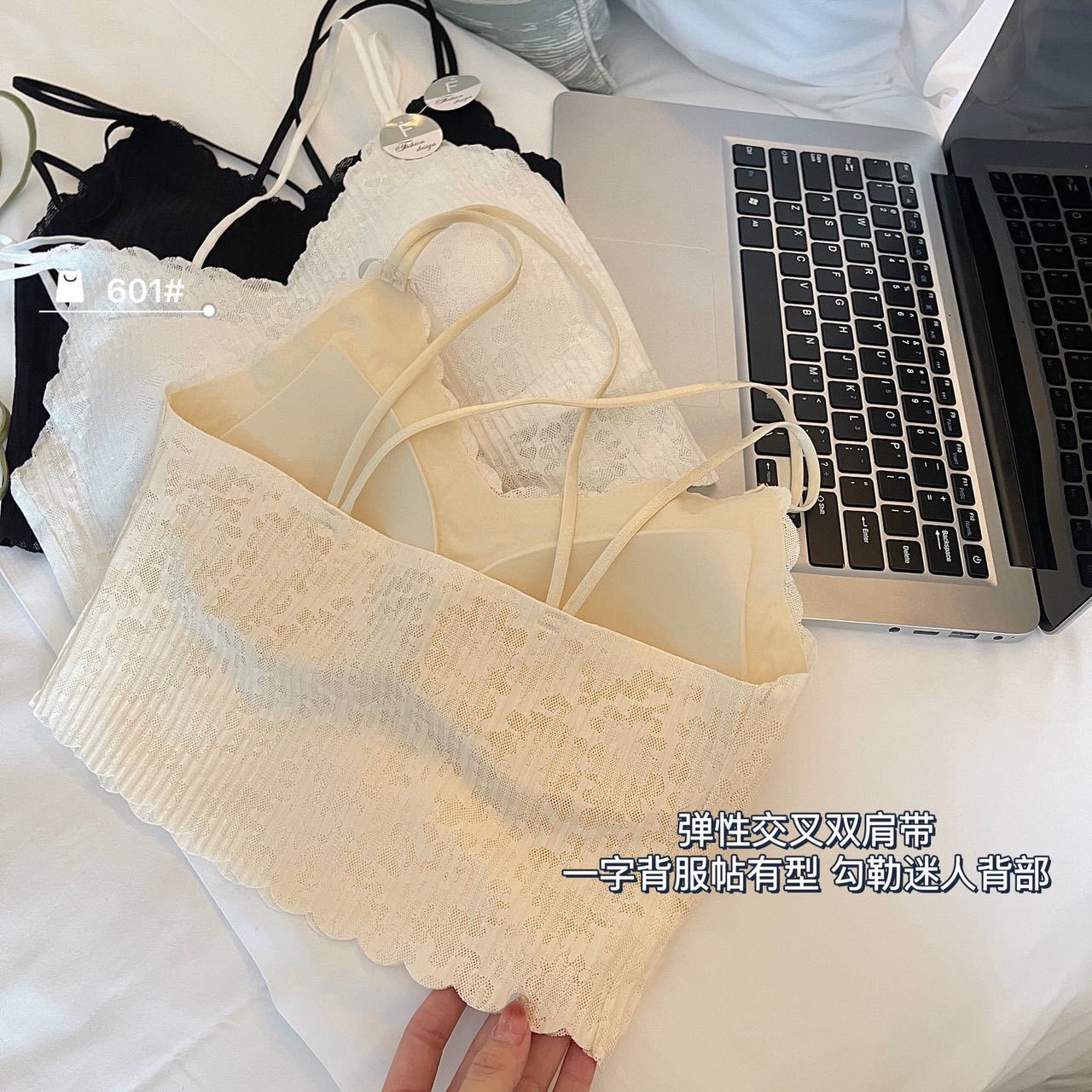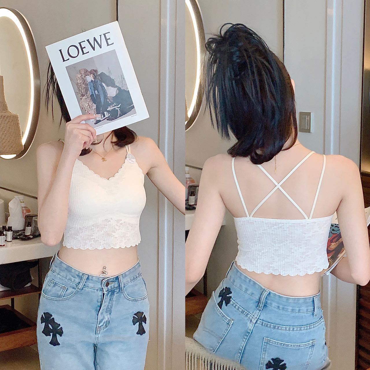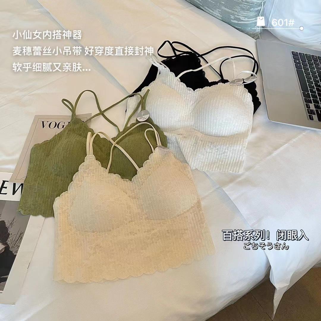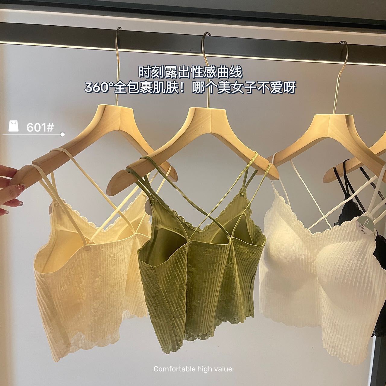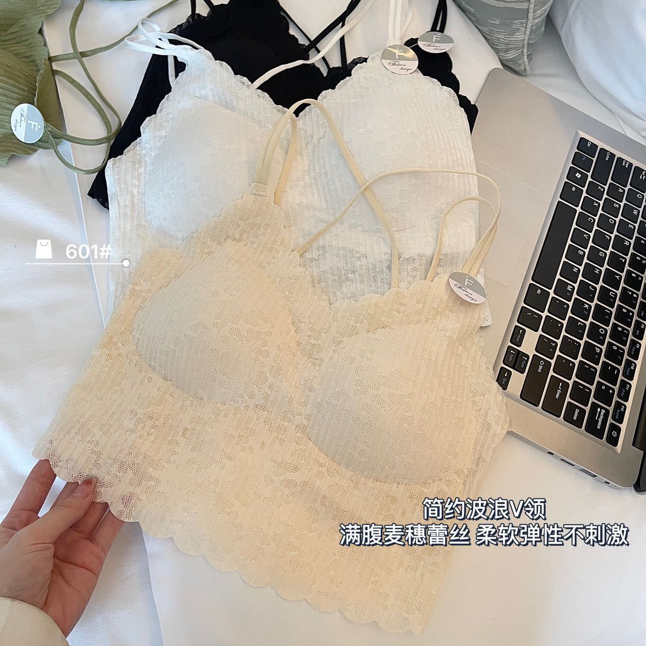 Verão Wheat Ear Lace Beautiful Back Small Sling Interno e Externo Wear One-piece Fixed Cup Seamless Vest Base Underwear para Mulheres